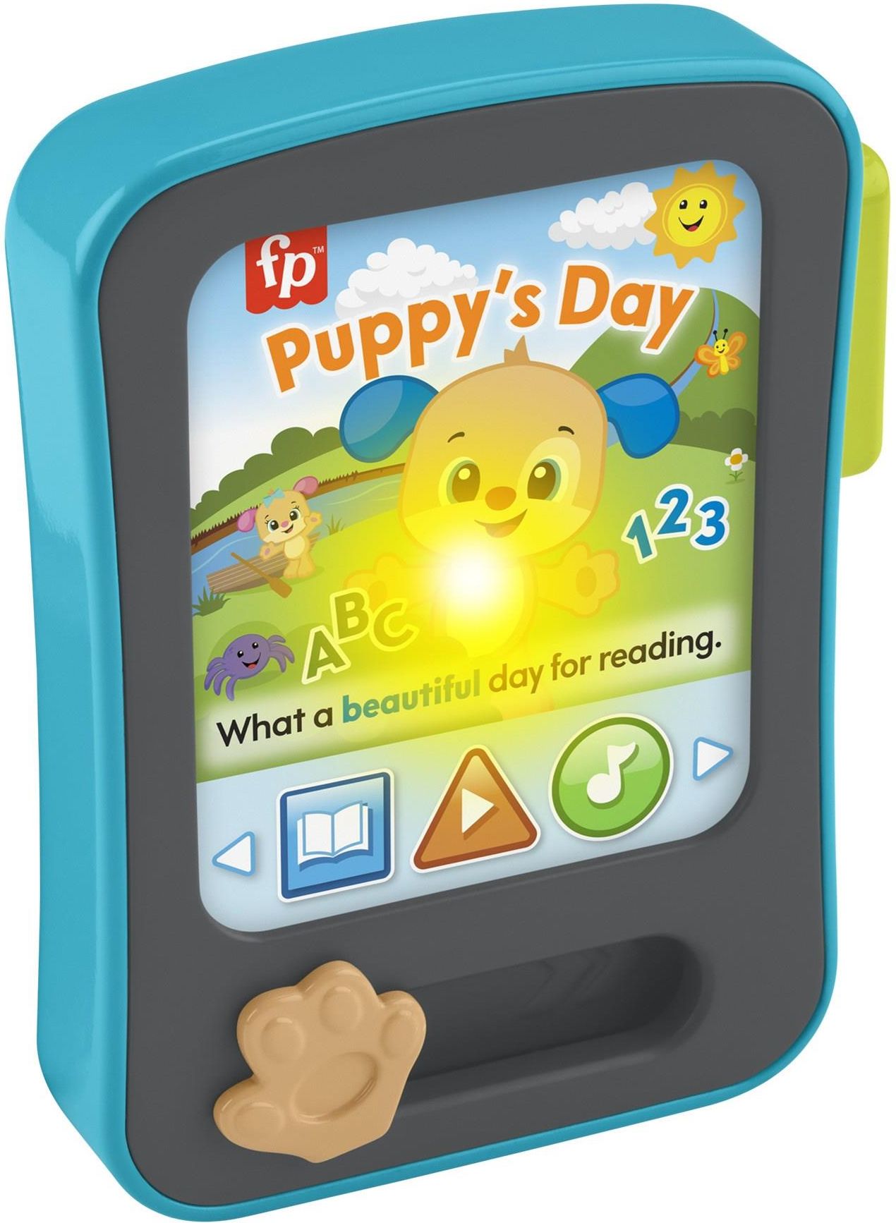 Fisher-Price „Ucz się i śmiej!” Czytnik Szczeniaczka Uczniaczka Zabawka interaktywna tablet, „czytnik” z muzyką, wypowiedziami i światełkami dla dzieci od 6 miesiąca życia, wersja z wyborem języka Dziecko może słuchać zabawnych rymowanek oraz bawić się w czytanie …