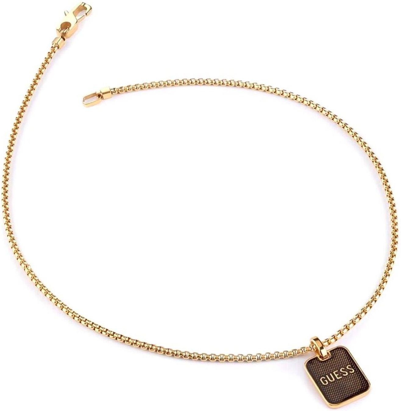 Naszyjnik GUESS - Legacy - JUMN03212JWYGBKT/U Biżuteria - Parametry: Materiał - STAL NIERDZEWNA Kolor - ŻÓŁTO ZŁOTY Zapięcie - KARABIŃCZYK Wykończenie - ZAWIESZKA prostokątna z napisem GUESS. Biżuteria - Wymiary: Długość łańcuszka - 46cm Wysokość zawieszki - 23mm Wysokość zawieszki - 18mm Przy zakupie otrzymujesz: Oryginalną biżuterię GUESS, Pudełko i torebkę GUESS, Woreczek na biżuterię GUESS, Certyfikat autentyczności.