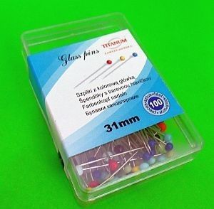 Specyfikacja - wykorzystywane m.in. w krawiectwie - szpilki z kolorową główką - długość: 31 mm - pakowane w pudełkach PCV po 100 szt.