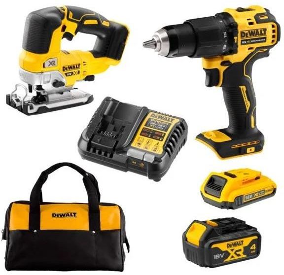 Zestaw COMBO DeWalt DCD709, DCS334 + zestaw zasilający ładowarka, 1x4Ah 1x2Ah, torba transportowa Zawartość zestawu Wiertarko-wkrętarka DeWALT DCD709 Wyrzynarka DeWALT DCS334 1x akumulator Li-Ion XR 18V 4Ah 1x akumulator Li-Ion XR 18V 2Ah Ładowarka wielonapięciowa Torba transportowa Zestaw COMBO …