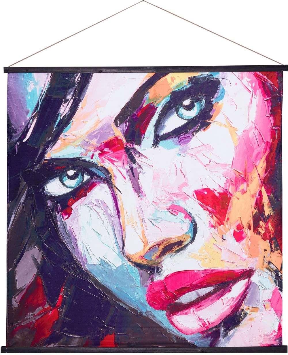 Kakemono Lorena 120x120cm, 120 x 120 cm Kod produktu: 814-644 Kakemono przestawiające abstrakcyjny portret kobiety do zawieszenia na ścianę. Szukasz oryginalnej ozdoby? Chciałbyś zaaranżować pustą ścianę? Wybierz modne kakemono i postaw na oryginalną dekorację w Twoim wnętrzu. Krawędzie zaopatrzone w drewniane drążki ułatwią rozwijanie i przechowywanie. Zwój-obraz zaopatrzonyw sznurek, umożliwiający przymocowanie do ściany. Rozwijany pionowo. Wymiary: szer. 120cm, wys. 120cm. Dane produktu Waga: 0.80kg Rozmiar: 120 x 120 cm