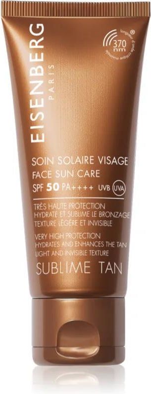 This very high protection facial sun care delivers an effective anti-UVA/UVB action to prevent photo-ageing and enhance your tan. A milky texture that remains invisible on skin. This formula, with its unique blend of natural ingredients, offers very effective protection against UV rays. Enriched with Aloe Vera which quickly moisturises and soothes the skin while the Polysaccharide Complex slows down dehydration and strengthens the skin barrier during sun exposure. Vitamin E completes its protective action against UV radiation damage. A tan-enhancing, moisturising and antioxidant treatment with the sensual notes of EISENBERG suncare range!