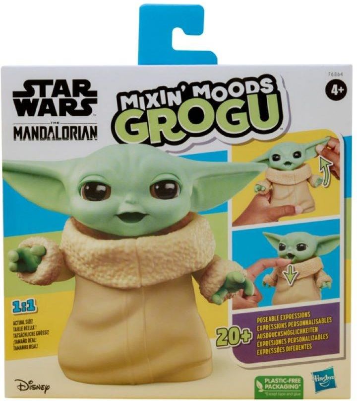 Hasbro Star Wars Mixin' Moods Grogu F6864 Przedstawiamy Grogu Mixin' Moods, najbardziej wyraziste stworzenie w galaktyce! Ta figurka Grogu o wysokości 12,5 cm ma miękką, formowalną skórę, dzięki czemu dzieci mogą zmieniać jego wyraz twarzy. Poruszaj jego uszami, ustami, powiekami, szyją i ramionami, aby odtworzyć ulubione momenty Grogu z rozrywki. Stwórz ponad 20 różnych wyrazów twarzy, mieszając jego rysy twarzy — zachęcamy do kreatywności! Zainspirowany ukochaną postacią z serialu akcji Mandalorian na Disney+, ten ruchomy kumpel będzie doskonałym prezentem dla każdego fana Gwiezdnych Wojen.  Cechy maskotki: MIXIN' MOODS GROGU: Mały awanturnik o wielkich uczuciach, ta zabawka Grogu (pieszczotliwie nazywana przez fanów „Baby Yoda”) ma 12,5 cm wysokości PONAD 20 POZYCYJNYCH WYRAŻEŃ: Ta figurka Grogu ma miękką, formowalną skórę na głowie, twarzy i uszach, dzięki czemu dzieci mogą mieszać ponad 20 różnych wyrażeń  ODTWÓRZ ULUBIONE CHWILE Z GROGU: Dzięki ruchomym uszom, powiekom, ustom, szyi i ramionam fani Grogu mogą ustawić go w pozie, aby odtworzyć swoje ulubione momenty z rozrywki  INSPIROWANA ROZRYWKĄ: Ta interaktywna zabawka ma design i dekoracje inspirowane ulubioną postacią fanów z serialu aktorskiego The Mandalorian na Disney+  PREZENT GWIEZDNYCH WOJEN DLA DZIECI: Ta figurka Gwiezdnych Wojen to świetny prezent dla 4-letnich chłopców i dziewcząt oraz stanowi idealny dodatek do kolekcji każdego fana Gwiezdnych Wojen