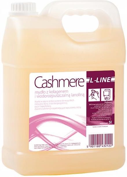 Mydło w płynie L-Line Cashmere od MPS w płynie z kolagenem i wodnorozpuszczalną lanoliną, elastyną i gliceryną. Przeznaczone do wszystkich rodzajów skóry, spełnia oczekiwania nawet najbardziej wybrednych Klientów. Jest to kompletny produkt o bardzo dobrych właściwościach myjących, z zawartością dużych ilości substancji wzbogacających. Pielęgnuje skórę, nie wysuszając jej. Kolor: kremowo-żółty Zapach: oryginalny zapach: kaszmir Wartość pH: około 5,5 Opakowanie: 5 litrów