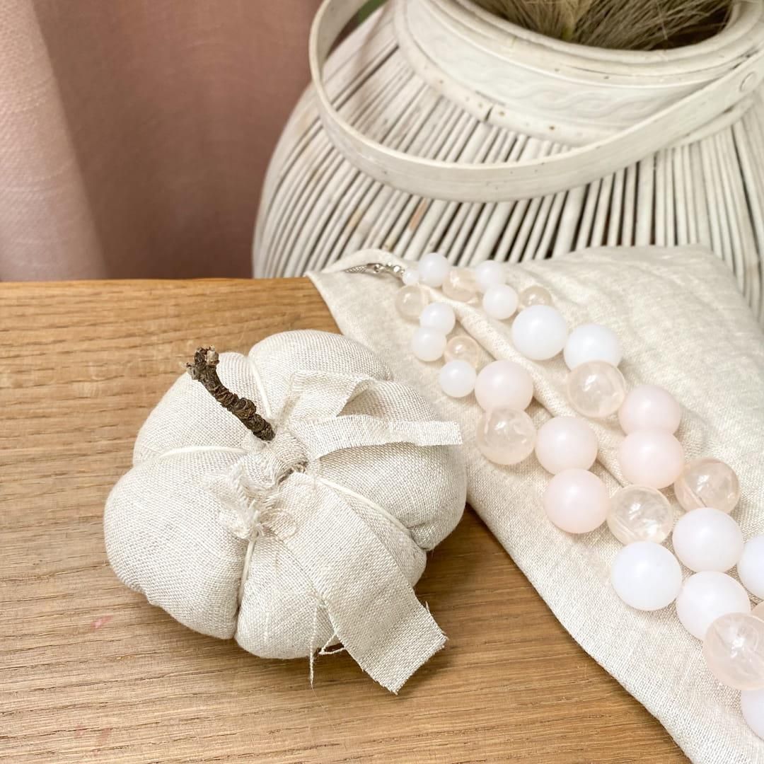 Jeśli lubisz delikatne dekoracje jesienne, to taka dynia na pewno spełni Twoje oczekiwania. Dynia zrobiona z przepięknego lnu w naturalnym kolorze, wykończona kawałkiem gałązki z jabłoni i kokardką z lnu w tym samym kolorze. Idealnie sprawdzi się jako jesienna dekoracja do salonu lub sypialni. Przepięknie będzie również wyglądać w jesiennej odsłonie kuchni lub przedpokoju. KOLOR: beż. * W związku z różnymi ustawieniami monitora, kolor rzeczywisty - barwy poszewki może minimalnie odbiegać od przedstawionych na zdjęciu. DOSTĘPNY ROZMIAR: średnica: ok. 8 cm wysokość (bez ogonka): ok. 5 cm MATERIAŁ: len WYPEŁNIENIE: poliester OGONEK: gałązka z jabłoni CZAS OCZEKIWANIA: 3 dni robocze + czas dostawy * Wszystkie nasze dekoracje są szyte po złożonym zamówieniu, zgodnie z ich kolejnością. HANDMADE: Wszystkie nasze produkty szyte są ręcznie w Polsce.