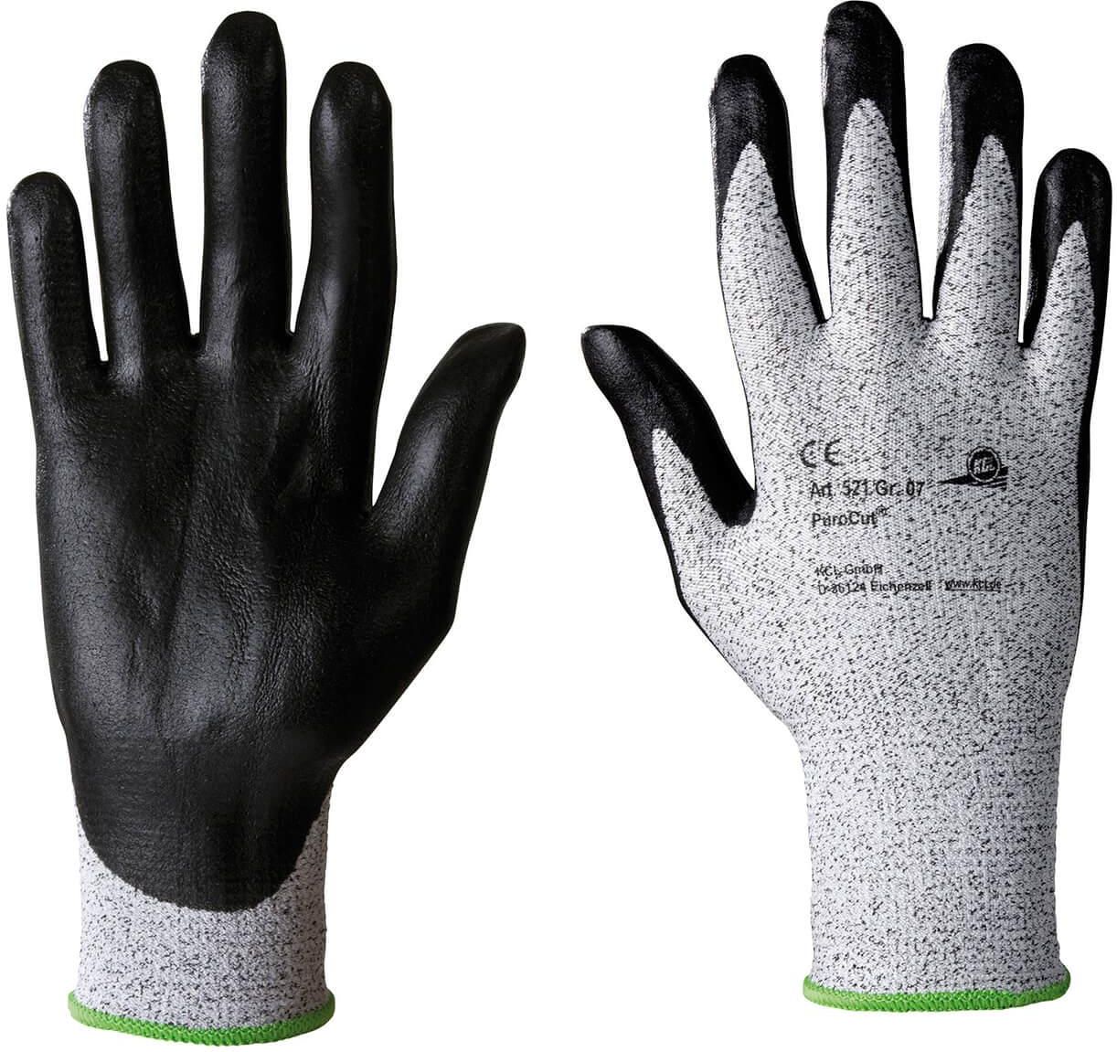Rękawice robocze KCL PuroCut 521, powlekane czarną pianką nitrylową. Bezszwowy trykot oraz dziany ściągacz gwarantują komfort oraz optymalne dopasowanie. Rękawice zapewniają wysoki poziom ochrony przed przecięciem. Zastosowanie: Polecane do wszelkich prac montażowych oraz do prac, podczas których istnieje duże ryzyko obrażeń mechanicznych (np. przemysł motoryzacyjny, przemysł budowlany, produkcja urządzeń. Normy i certyfikaty: EN 388 (4 X 4 3 B) Dostępne rozmiary: 7,8,10