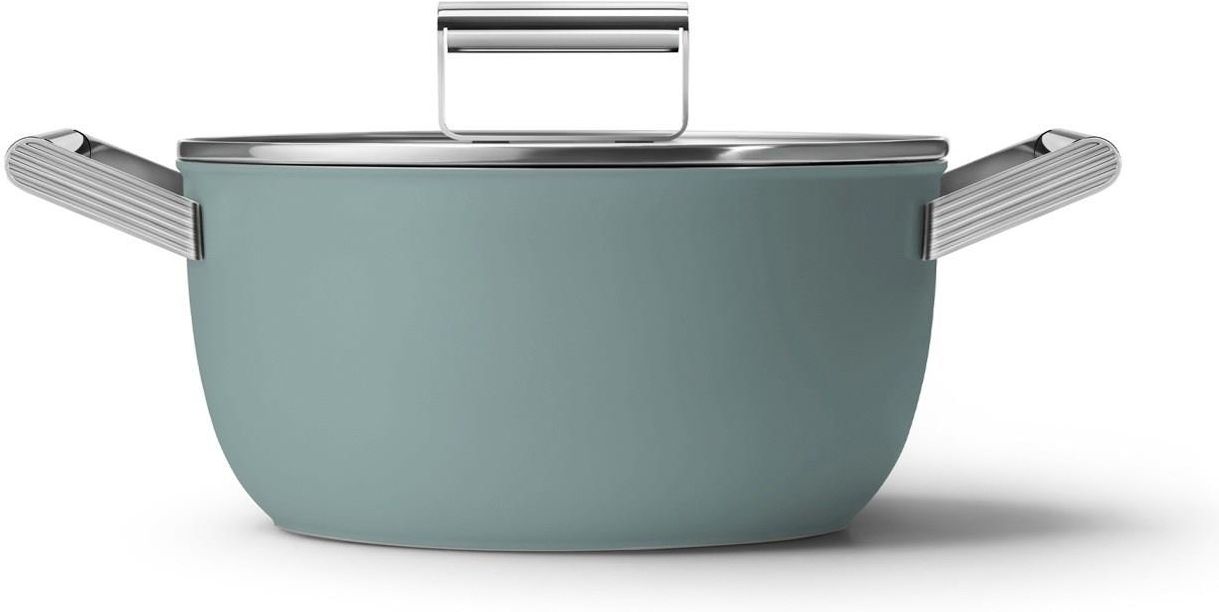 Garnek 24 cm SMEG CSF2412EGM Szmaragdowy 50's Style Wykonany we Włoszech z dbałością o szczegóły i z wysokiej jakości materiałów, garnek posiada powłokę ceramiczną wolną od PFAS i jest wyposażony w szklaną pokrywkę. Wszechstronny i praktyczny, idealnie nadaje się do przygotowywania wszelkich potraw …