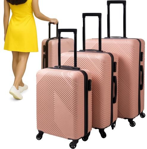 Walizka Podróżna Zestaw Walizek Duża Średnia Mała Walizki na Kółkach Bagaż różowe Trizand 26663 Lubin