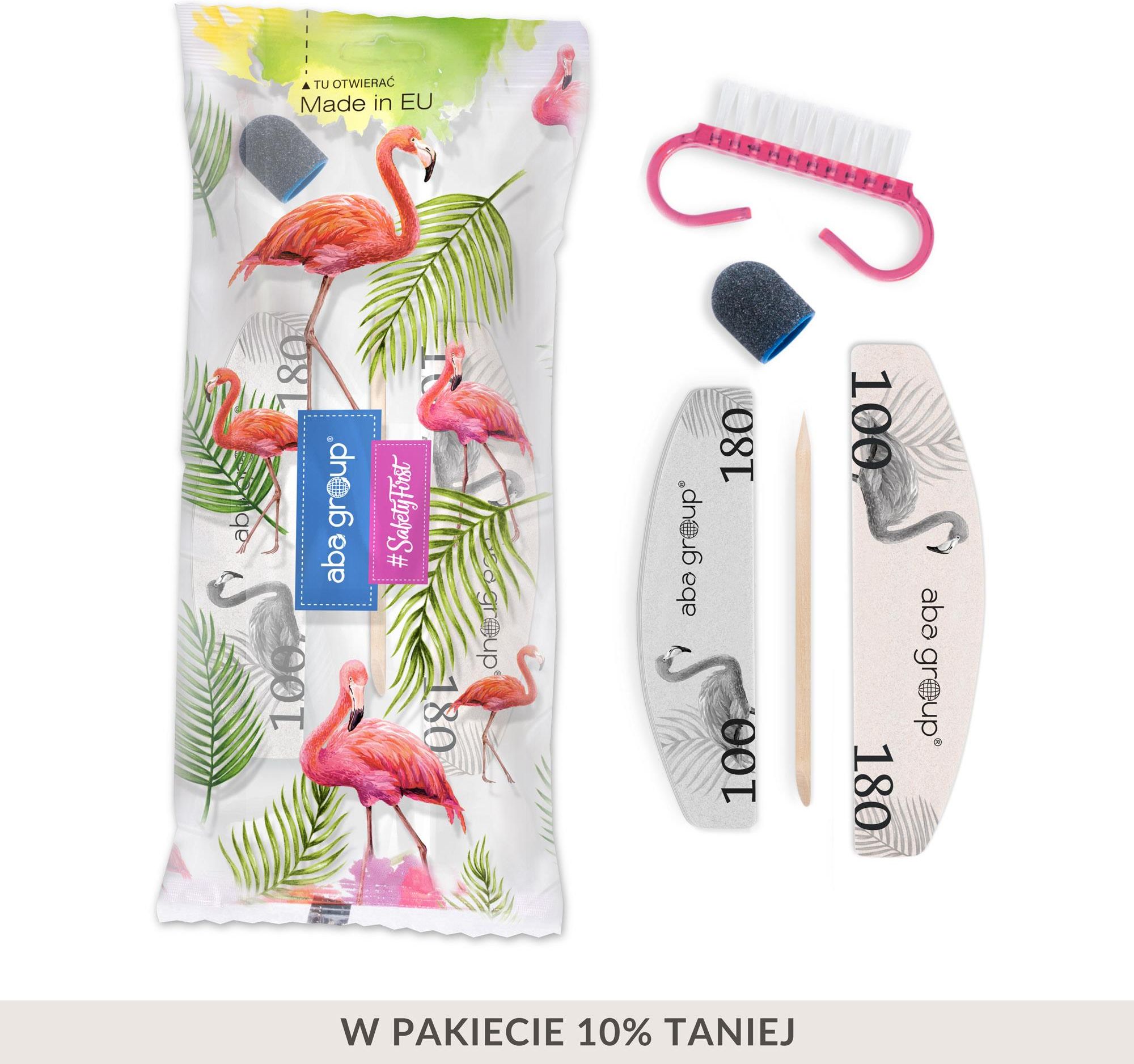 Jednorazowy zestaw Bezpieczny Pakiet to komplet trzech przyrządów niezbędnych przy podstawowej pracy manikiurzystki. Pilnik mini PÓŁKSIĘŻYC o gradacji 100/180 to produkt dedykowany do użytku profesjonalnego, przeznaczony do paznokci zarówno naturalnych, jak i sztucznych. Ergonomiczny kształt pozwoli na dotarcie do trudno dostępnych miejsc. Niewielkie rozmiary sprawdzą się idealnie podczas piłowania paznokci u stóp. Polerka Mini PÓŁKSIĘŻYC 100/180 sprawdzi się bez problemu do opracowywania i wygładzania powierzchni paznokci. Nada się zarówno do matowienia naturalnej płytki, jak i do wygładzania nałożonej masy żelowej, bądź akrylowej. Patyczek drewniany dołączony do zestawu sprawdzi się przy odsuwaniu skórek. Jednorazowa nakładka o gradacji 80 pozwoli na szybkie opracowanie zrogowaciałej skóry na stopach. Szczoteczka idealna do usuwania pyłu z paznokci podczas zabiegów stylizacyjnych Zestaw został zapakowany w estetyczne, jednorazowe opakowanie, dzięki któremu zarówno Ty, jak i Twoje klientki możecie mieć pewność, że produkt nie został wcześniej użyty i jest w pełni higieniczny. Skład zestawu zawiera: - Pilnik mini do paznokci Aba Group PÓŁKSIĘŻYC 100/180 - Sweet polerka mini blok Aba Group PÓŁKSIĘŻYC 100/180 - Nakładka, kapturek Aba Group gradacja 80 rozmiar 13 - Patyczek drewniany - Szczoteczka do paznokci - mała