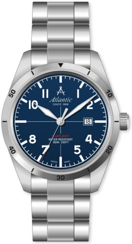 MECHANIZM: Męski zegarek Atlantic Classic SEAFLIGHT 70356.41.55 wyposażony jest w kwarcowy mechanizm, zasilany za pomocą baterii. Posiada bardzo wysoką dokładność mierzenia czasu +/- 10 sekund w przeciągu 30 dni. KOPERTA: Mechanizm szwajcarski mieści się w stalowej, wytrzymałej kopercie. Wykorzystanie wysokiej jakości stali w kopercie gwarantuje, że zegarek odporny jest na korozję i uszkodzenia oraz nie powoduje alergii. Stop stali szlachetnej charakteryzuje się optymalna odpornością na korozje. W zegarkach ATLANTIC wykorzystany jest jeden z najlepszych stopów stali 316L. TARCZA: Tarcza zegarka w kolorze granatowym z wyraźnymi białymi cyframi zapewnia przejrzysty i czytelny wygląd. Wskazówki posiadają elementy luminescencyjne. SZKŁO: Zegarek wyposażony w szkło szafirowe, które oprócz niezwykłej twardości (stopień 9 w skali Mohsa) charakteryzuje się także odpornością na skrajne różnice temperaturowe i działanie rozpuszczalników. Oprócz tych zalet ma najlepsze właściwości optyczne. Szkło z wysokiej jakości tlenku aluminium. BRANSOLETKA- Wykorzystanie wysokiej jakości stali w bransolecie gwarantuje, że zegarek odporny jest na korozję i uszkodzenia oraz nie powoduje alergii. Stop stali szlachetnej charakteryzuje się optymalna odpornością na korozje. ZAPIĘCIE: Standardowe zamknięcie na podwójny zatrzask gwarantuje posiadaczowi tego zegarka, że nie zsunie mu się z ręki nawet w momencie niechcącego otwarcia. Natomiast zamknięcie bransolety odbywa się przez zatrzaśnięcie. Na zapięciu widnieje eleganckie logo Atlantic. WODOSZCZELNOŚĆ: Zegarek z wodoszczelnością 50m (5 ATM), gwarantuje właścicielowi, że nie musi bać się zachlapań, czyli np. mycia rąk. Oprócz tego w zegarku można się kąpać, pływać na basenie itp. Podczas kontaktu z wodą nie wolno wciskać guzików i ustawiać zegarka. DATOWNIK : wygodny datownik umieszczony na tarczy ukazuje w formie popularnego okienka aktualny dzień miesiąca. Atlantic – jest to szwajcarska firma produkująca zegarki. Została założona w 1888 roku w szwajcarskiej miejscowości Bettlach przez Eduarda Kummera. Początkowo firma nosiła nazwę EKB- Eduard Kummer Bettlach , później zmienioną na Atlantic. Na początku swojej działalności firma zajmowała się produkcją podzespołów dla takich marek jak Certina czy Longines. W 1932 roku rozpoczęła produkcję własnych zegarków pod marką Atlantic. Ówcześnie były to, jedne z pierwszych na świecie zegarków wodoszczelnych. Firma "Atlantic" wynalazła mechanizm szybkiego przesuwu datownika za pomocą koronki. Najpopularniejszym kiedyś modelem zegarka "Atlantic" był Worldmaster. W Polsce zegarki Atlanic pojawiły się w 1950roku i szybko zaczęły cieszyć się dużym powodzeniem i już od 1965 zegarki tej firmy należały do najlepiej sprzedających się zegarków na naszym rynku. Jesteśmy AUTORYZOWANYM DYSTRYBUTOREM marki ATLANTIC. WSZYSTKIE SPRZEDAWANE ZEGARKI SĄ NOWE. Po zakupie otrzymujecie Państwo: • Oryginalnie zapakowany zegarek • Gwarancje (24 miesiące) • Paragon (faktura VAT)