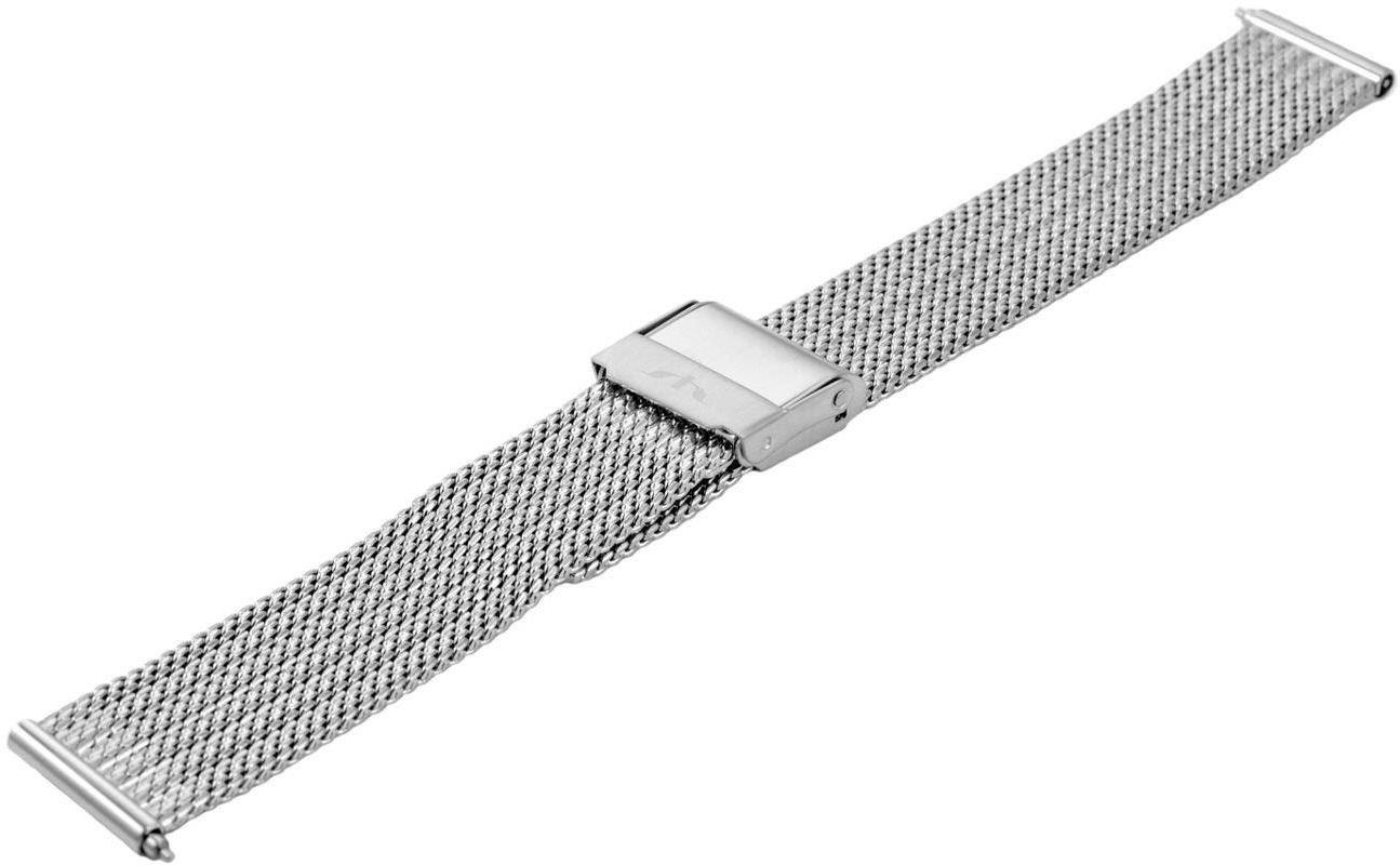 Srebrna stalowa siatkowa błyszcząca prosta bransoleta mediolańska mesh. Odporna na ścieranie powłoka PVD. System EASY CLICK - bardzo łatwy montaż. Szerokość 16 mm. Bransoleta pasuje do każdego zegarka ze standardowym mocowaniem o szerokości 16 mm