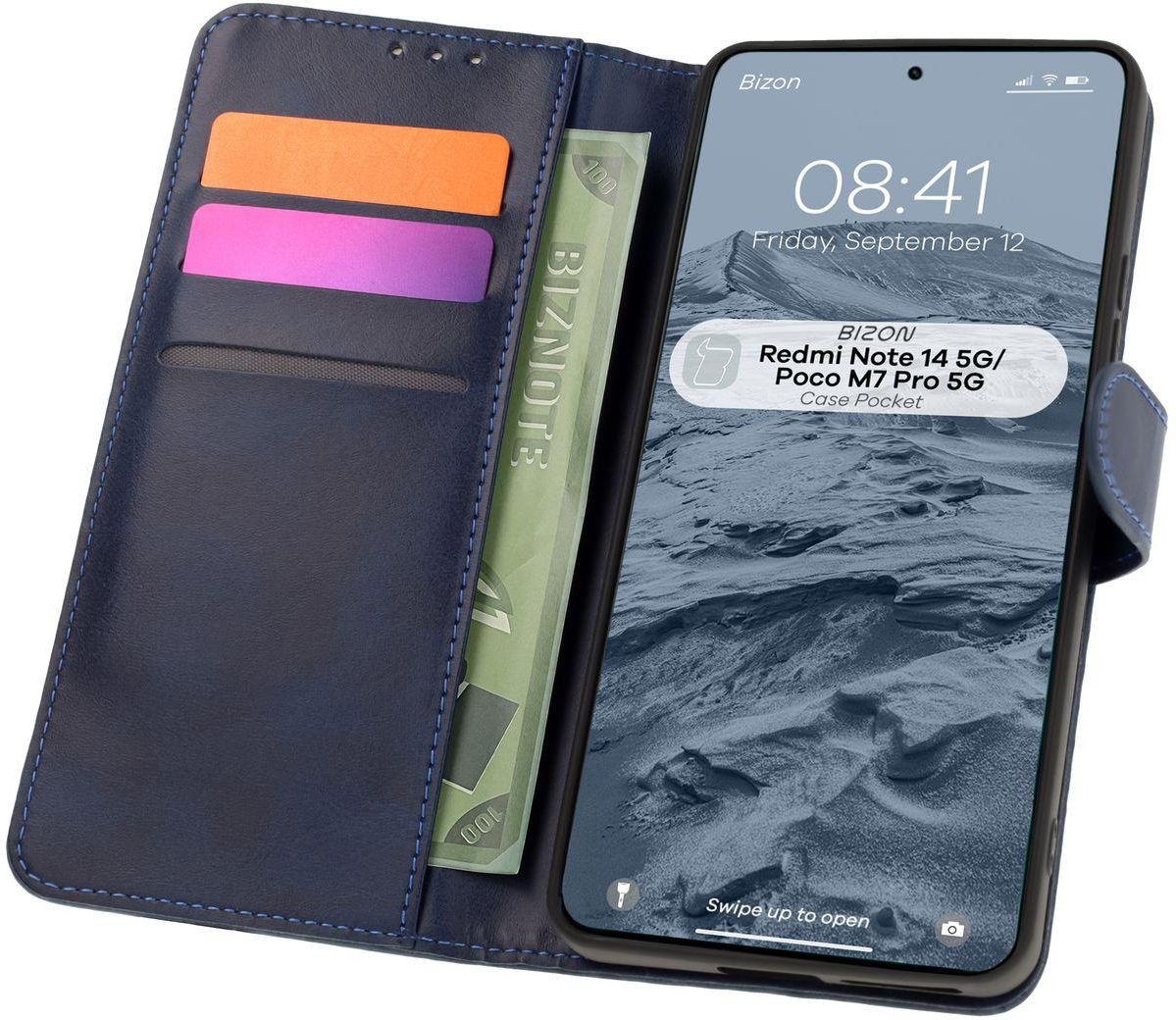 Etui z klapką, zamykane, magnetyczne, obudowa 360, etui portfelowe, skórzane - nieważne, jak na to mówisz, ważne, że udało Ci się znaleźć granatowe etui Bizon Case Pocket do Xiaomi Redmi Note 14 5G / Xiaomi Poco M7 Pro 5G!
