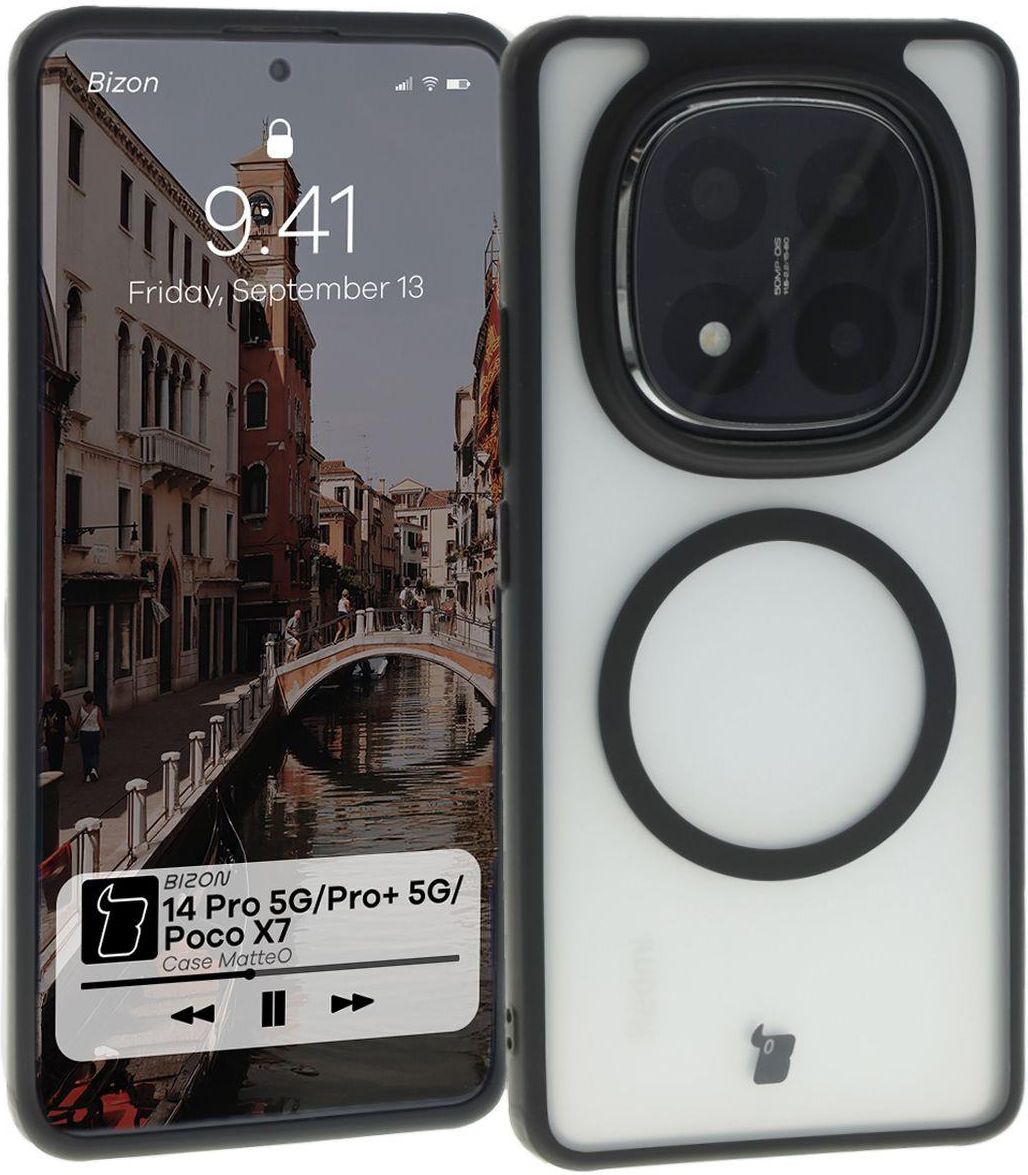 Bizon Etui Z Pierścieniem Magnetycznym Case Matteo Do Xiaomi Redmi Note 14 Pro 5G Plus Poco X7 Półprzezroczyste Czarną Ramką Lublin