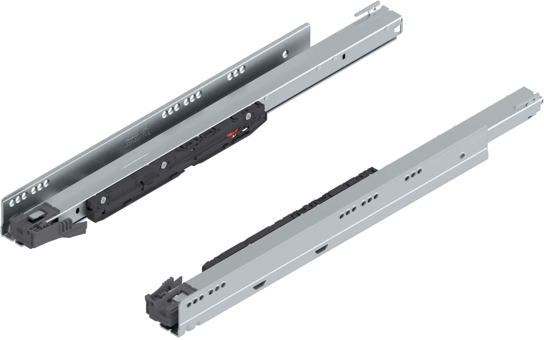 Prowadnica LEGRABOX, 753.5501S, L=550 mm, 70 kg, R+L, Pełny wysuw, Blumotion S, BLUM Prowadnice LEGRABOX firmy BLUM występują w różnych wariantach: TIP-ON BLUMOTION, BLUMOTION, BLUMOTION S. Obciążenie jakie posiadają to od 40 do 70 kg, co pozwala na ułożenie ciężkich rzeczy w szufladzie. Wykonana jest ze stali i posiada ocynkowaną powierzchnie. Każdą z tych prowadnic cechuje wysoka jakość i wytrzymałość. Prowadnice w systemie LEGRABOX pozwalają nam na ciche otwieranie, zamykanie szuflad oraz nadają się do bezuchwytowego otwierania szuflad. Występują w różnych długościach. Na komplet składa się prowadnica lewa i prawa. Szczegóły produktu: - Dopuszczalne obciążenie [kg]: 70 - Długość [mm]: 550 - Typ wysuwu: Pełny wysuw - Sposób montażu: Do boków korpusu - Pokrycie/Kolor: Ocynkowane - Materiał: Stal - Waga [kg]: 2.60