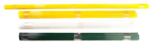 Pręty z włókna szklanego ŻÓŁTE - 200cm - 8mm Dane Pręty z włókna szklanego Kolor: Żółte Długość: 200cm Średnica 8mm Ilość sztuk w opakowaniu: 25 Tyczki z włókna szklanego - trwałe podpory do roślin Włókno szklane wyróżnia się dużą wytrzymałością na uszkodzenia mechaniczne. Paliki wykonane z tego surowca pozostają jednocześnie lekkie i stabilne. Połączenie tych cech stanowi o popularności wykorzystywania włókna szklanego nie tylko w ogrodnictwie, ale również w kontekście produkcji sprzętu sportowego. Co więcej, paliki tego typu są odporne na wilgoć i skrajne temperatury i długo zachowują swoje pierwotne właściwości. Tyczki z włókna szklanego można wykorzystać m.in. do tworzenia: podpórek dla sadzonek drzew i roślin pnących, stabilizatorów, pastwisk i zbrojeń, tuneli foliowych, ogrodzeń pastwisk. Paliki z włókna szklanego - w ogrodnictwie i nie tylko Dostępne w sprzedaży pręty z włókna szklanego o długości 200cm cechują się wytrzymałą, a jednocześnie giętką konstrukcją. Paliki mogą zostać wykorzystane do uprawy roślin pnących w domu, ogrodzie lub szklarni. Uniwersalny charakter elementów oraz ich ekonomiczny charakter przemawia jednak za możliwością szerszego zastosowania palików wykonanych z tego tworzywa. Uwaga: Maksymalny kąt wygięcia tyczki wynosi 180 stopni (gdzie wygięcie w okrąg daje 360 stopni) wygięcie powyżej tego kąta może powodować rozszczepienie tyczki i utratę przez nią właściwości.
