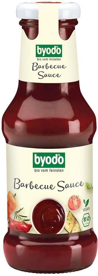SKŁADNIKI woda, surowy cukier trzcinowy*, koncentrat pomidorowy*, ocet brandy*, skrobia kukurydziana*, sól kamienna, syrop cukrowy karmelowy*, pieprz*, czosnek*, GORCZYCA*, sól wędzona (sól, dym), przyprawy*, substancja zagęszczająca: guma guar*. (*certyfikowany składnik ekologiczny) OPIS Typowo amerykański, pikantny i ostry, obowiązkowy dla każdego mistrza grillowania – taki jest nasz ekologiczny sos barbecue. Wędzona sól, czosnek, koncentrat pomidorowy i pieprz nadają mu niepowtarzalny, pyszny smak BBQ. WARTOŚĆ ODŻYWCZA W 100 g Wartość energetyczna: 607 kJ/143 kcal Tłuszcz: <0,5 g w tym kwasy tłuszczowe nasycone: <0,1 g Węglowodany: 33 g w tym cukry: 30 g Białko: 1,1 g Sól: 2,8 g ZALECANE WARUNKI PRZECHOWYWANIA Po otwarciu przechowywać w lodówce. WEGETARIAŃSKI: WEGETARIAŃSKI CERTYFIKAT BIO: CERTYFIKAT BIO BEZ GLUTENU (deklaracja): BEZ GLUTENU (deklaracja) WEGAŃSKI: WEGAŃSKI BEZ GLUTENU (w składnikach): BEZ GLUTENU (w składnikach) PRODUCENT - NAZWA I ADRES: Byodo Naturkost GmbH Leisederstrasse 2;84453 Muehldorf Germany