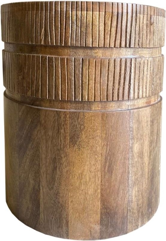 Szerokość: 38cm/Głębokość: 38cm/Wysokość: 45cm/ Kod: 99-ART061MH/Ręcznie rzeźbiony stolik okrągły w formie walca Cechy mebla: - wykonany w całości z litego drewna mango - dekoracyjne żłobienia drewna - okrągła forma stolika - powierzchnia średnicy blatu 38cm - może służyć jako drewniany stolik lub …