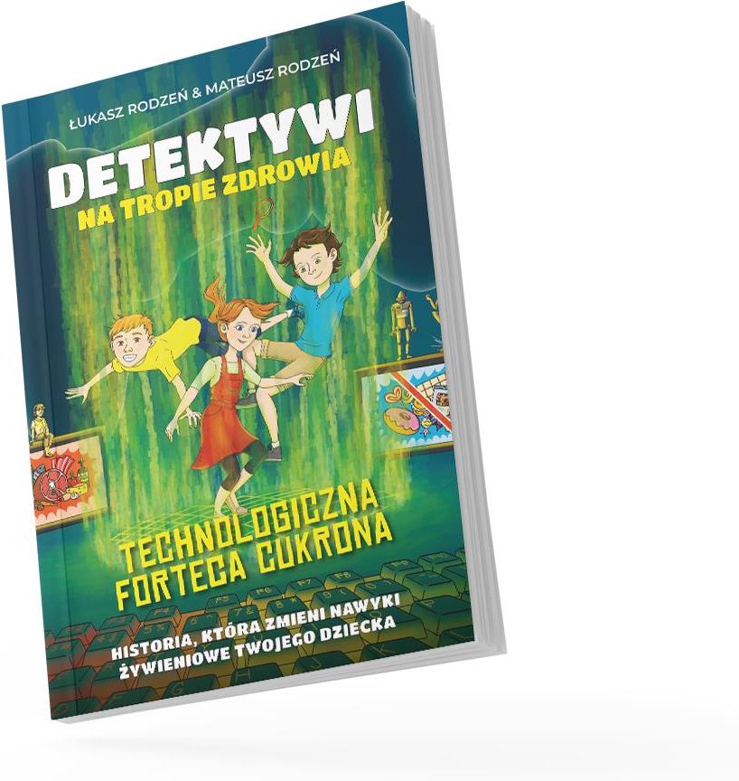 Detektywi na tropie zdrowia część druga - Łukasz Rodzeń, Mateusz Rodzeń Technologiczna forteca cukrona Cukron powraca – silniejszy, sprytniejszy i bardziej przebiegły niż kiedykolwiek! W drugiej części serii „Detektywi na tropie zdrowia” trójka bohaterów – Helenka, Krzyś i Wojtuś – trafia na ślad nowego zagrożenia: fortecy stworzonej z pułapek technologii i przetworzonych produktów. To już nie tylko cukier w słodyczach. Teraz zagrożenia kryją się w grach, reklamach, napojach energetycznych i jedzeniu, które tylko udaje „fit”. Książka pokazuje najmłodszym, jak rozpoznawać ukryte mechanizmy wpływające na ich zdrowie, koncentrację i emocje. Przygodowa narracja, humor i atrakcyjna forma wizualna sprawiają, że ta edukacja dzieje się sama – bez moralizowania i nudy. To nie tylko bajka. To narzędzie do rozmowy o: wpływie ekranu na mózg i sen, działaniu przetworzonych produktów i ich składników, sile nawyków i samodzielnego myślenia. Co znajdziesz w środku? ✅ Wciągającą opowieść detektywistyczną z mądrym przesłaniem ✅ Wiedzę o ukrytych formach cukru i przetworzonej żywności ✅ Przykłady wpływu technologii na zdrowie dzieci (koncentracja, sen, apetyt) ✅ Kolorowe ilustracje, przystępny język i duża wartość edukacyjna ✅ Pomoc dla rodziców w budowaniu zdrowych nawyków bez konfliktów ✅ Drugą część serii, która świetnie uzupełnia tom pierwszy Kupujesz oryginalny egzemplarz prosto od autorów. Wysyłka błyskawiczna z Polski + darmowa dostawa Allegro SMART Zmień myślenie. Zacznij od jedzenia, które leczy. Można pięknie żyć. „Technologiczna forteca Cukrona” To nie tylko kontynuacja przygody. To kolejny krok w budowaniu odporności dziecka na pułapki współczesnego świata – od cukru po technologię. Historia stworzona przez lekarzy – z doświadczeniem pracy z dziećmi i rodzinami Pomaga zrozumieć, jak media, ekrany i przetworzona żywność wpływają na zdrowie Wspiera rodziców w rozmowie o granicach, koncentracji i świadomym życiu offline Co znajdziesz w środku? Wciągającą kontynuację historii Helenki, Krzysia i Wojtusia Nowe zagadki i śledztwo w świecie przetworzonej żywności i mediów Zrozumiałe wyjaśnienia, jak technologia i cukier wpływają na mózg dziecka Kolorowe ilustracje i wartką akcję – idealne do wspólnego czytania Narzędzia do rozmów o zdrowiu, ekranach i emocjach Dla kogo / zastosowanie Książka będzie idealna, jeśli: Twoje dziecko spędza coraz więcej czasu przy ekranie Chcesz nauczyć je, jak rozpoznawać pułapki przetworzonego jedzenia i marketingu Szukasz mądrego sposobu na rozmowy o zdrowiu bez wykładów Zależy Ci na tym, by dziecko zrozumiało wpływ diety i technologii na koncentrację, sen i nastrój Cenisz wartościowe książki, które uczą przez zabawę Co mówią rodzice i dzieci? „Moje dziecko zaczęło samo analizować, co ogląda i co je. I to nie ja mu kazałam!” „To już nie tylko bajka – to przewodnik po świecie, w którym naprawdę żyjemy.” „Dzieciaki były zachwycone, a my – rodzice – mieliśmy punkt wyjścia do rozmowy o telefonach i jedzeniu.” Dołącz do rodzin, które chcą wychować dzieci świadomie, mądrze i z uśmiechem. Bo można pięknie żyć – nawet w czasach ekranów i fast foodu.