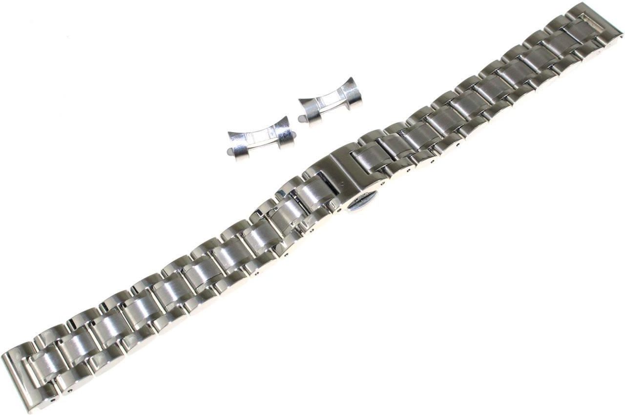 Srebrna stalowa zwężana błyszcząca bransoleta z pełnych ogniw do zegarków. Szerokość mocowania 14 mm. Zapięcie motylkowe. Bransoleta pasuje do wszystkich zegarków ze standardowym mocowaniem o szerokości 14 mm. Teleskopy i maskownice w zestawie