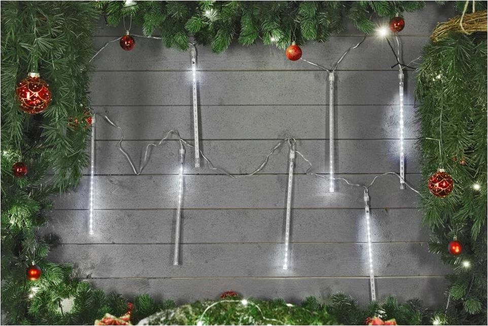 Łańcuch świetlny z deszczem meteorytów.Ładny łańcuch świetlny marki Ekvip zatwierdzony do użytku zewnętrznego! Składa się z 10 meteorytów o długości 30 cm, w których znajduje się łącznie 180 białych, wbudowanych (niewymiennych) diod LED zapewniających wspaniały efekt świetlny. Łańcuch stanowi element do rozbudowy z serii Ekvip Connectable System.Wyłącznik czasowyWyłącznik czasowy może włączyć łańcuch na 8 h, a następnie wyłączyć go na 5 h, włączyć na 4 h i znowu wyłączyć na 7 h. Za pomocą jednego przycisku można wybrać funkcję wyłącznika czasowego, tryb pracy ciągłej lub wyłączyć światło.Złącza na obu końcachNa obu końcach łańcucha znajduje się złącze do podłączenia transformatora, przewodu lub łańcucha świetlnego.Ekvip Connectable System 31 VProdukt należy do serii Ekvip Connectable System 31 V – linii oświetlenia świątecznego z możliwością rozbudowy, obejmującej wiele kompatybilnych łańcuchów świetlnych i akcesoriów. Łańcuch świetlny należy podłączyć do zakupionego osobno transformatora lub do innego łańcucha świetlnego z transformatorem.