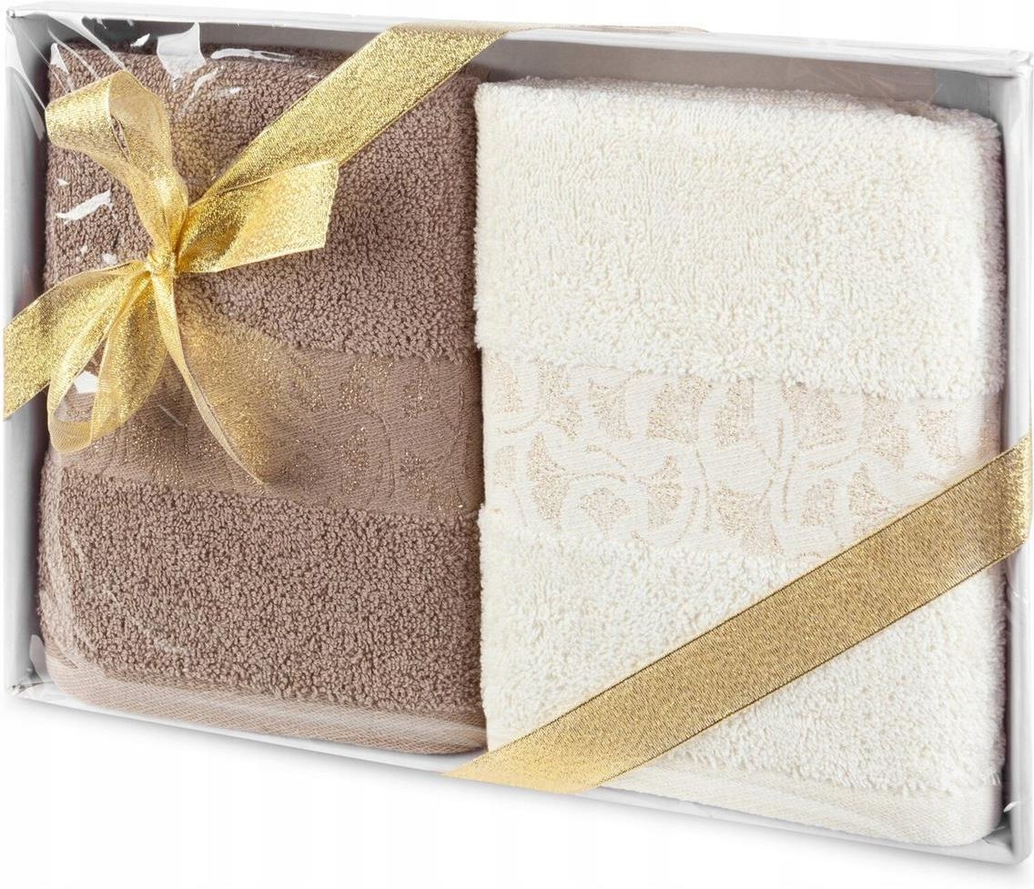Eurofirany Komplet Ręczników W Pudełku 50X90 Kremowy Brązowy Jasny 450G/M2 Lublin