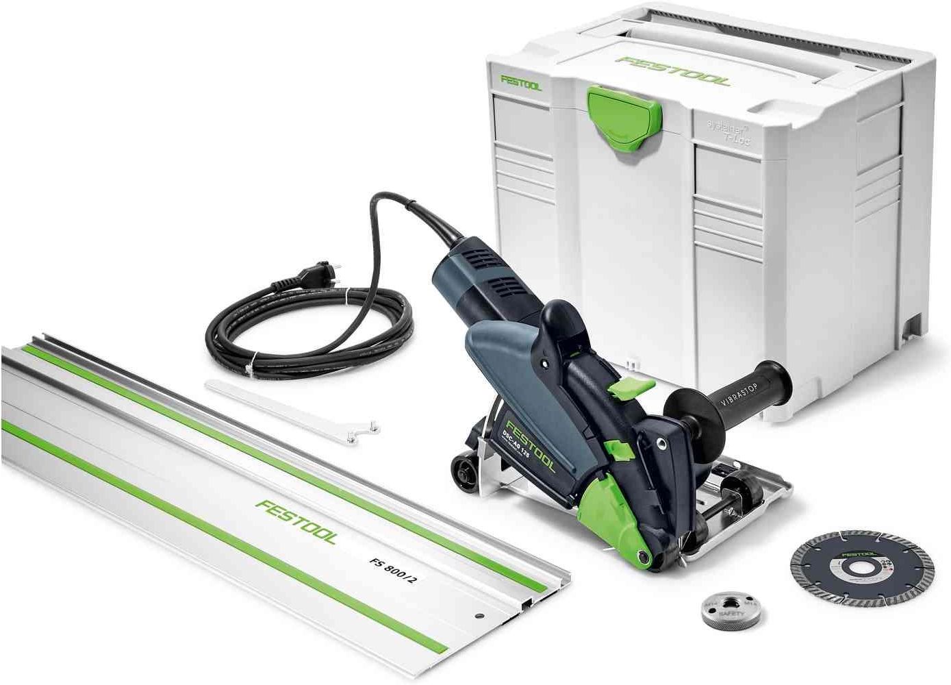 System cięcia z osprzętem diamentowym DSC-AG 125 Plus-FS Funkcje Dokładne cięcie bez pyłu. System cięcia z osprzętem diamentowym na głębokość do 27 mm. Czasy, w których cięcie i szlifowanie wiązało się z dużą ilością pyłów, przeszły już do lamusa. Szkodliwe pyły są niezawodnie odsysane, użytkownik chroni swoje zdrowie i może swobodnie patrzeć na obrabiany przedmiot. W połączeniu z odpowiednim wyposażeniem oraz materiałami eksploatacyjnymi powstaje więc optymalne rozwiązanie, umożliwiające wydajną, czystą i precyzyjną pracę. System cięcia z efektywnym odsysaniem pyłu chroni zdrowie Stół prowadzący z rolkami dla pewnego ruchu na elemencie obrabianym Okienko kontrolne zapewnia stałą widoczność linii cięcia Funkcja zagłębiania: umożliwia rozpoczęcie cięcia w każdym miejscu materiału Możliwość stosowania na szynie prowadzącej Festool dla uzyskania dokładnych cięć Najważniejsze cechy produktu Szybko najlepszy rezultat: Szybkie i precyzyjne cięcie do 23 mm głębokości, dzięki połączeniu z szyną prowadzącą Festool. Wygoda i pewność: Pewne prowadzenie na stole prowadzącym z rolkami. Lepiej pracować z systemem: Ochrona zdrowia i czystość w miejscu pracy, w połączeniu z optymalnie dopasowanym odkurzaczem mobilnym Festool. Szczegóły produktu DSC-AG 125 Plus-FS Precyzja nie do pobicia Dzięki skutecznemu odsysaniu pyłu, system cięcia z osprzętem diamentowym DSC-AG 125 zapewnia ochronę zdrowia podczas pracy. Połączenie z szyną prowadzącą Festool, umożliwia on precyzyjne cięcia przy drzwiach, oknach, rowkach i przypodłogowych szczelinach dylatacyjnych. Bezpyłowe cięcie materiałów budowlanych System cięcia z osprzętem diamentowym DSC-AG 125 gwarantujący czystą i precyzyjną pracę przy głębokości cięcia 27 mm. Precyzyjnie i czysto Dzięki funkcji zagłębiania urządzenia DSC AG 125, można rozpocząć cięcie w dowolnym miejscu podłogi. Bez pyłu również bez prowadnicy Uzupełnienie systemu cięcia z osprzętem diamentowym – system cięcia z "wolnej ręki" DSC-AG 125 FH do materiałów mineralnych, naprawy rys i ścian. Nawet przy samej krawędzi. Zastosowanie Najważniejsze zastosowania Szybkie i bezpyłowe cięcie materiałów mineralnych Wycinanie elementów drzwi/okien, szczelin dylatacyjnych w posadzkach, rowków dla przewodów Akcesoria Tarcze Diamentowe Szyny prowadzące