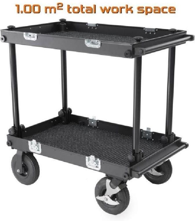 Smartone – Wózek Transportowy i Stanowisko Robocze Smartone to wszechstronny wózek, który można wykorzystać zarówno do transportu sprzętu, jak i jako stanowisko robocze. Jego konstrukcja została zaprojektowana z myślą o wytrzymałości, łatwości w użytkowaniu oraz elastyczności w różnych warunkach pracy. Dzięki trwałym materiałom, precyzyjnemu wykonaniu oraz wysokiej jakości komponentom, Smartone to niezawodny wybór dla profesjonalistów, którzy potrzebują mobilności i stabilności w codziennej pracy. Najważniejsze cechy: Zastosowanie dwufunkcyjne – wózek może służyć zarówno do transportu sprzętu, jak i jako mobilne stanowisko robocze, oferując wygodną przestrzeń roboczą Wysoka nośność – aluminiowa konstrukcja zapewnia lekkość i trwałość, a maksymalne obciążenie wynosi 200 kg Wytrzymałe koła – opony z 4-warstwowej gumy umieszczone na stalowych felgach gwarantują trwałość i płynność ruchu Bezpieczne prowadzenie – wózek wyposażony w 2 ręczne hamulce nożne z regulacją siły, zapewniając bezpieczne prowadzenie na większości powierzchni Beznarzędziowy montaż – szybkie i łatwe mocowanie oraz demontaż kół i innych części wózka, co oszczędza czas i ułatwia użytkowanie Błyskawiczne składanie – wózek jest gotowy do użycia w mniej niż 2 minuty Kompatybilność z akcesoriami – wózek posiada dedykowane miejsce do instalowania ciężkich monitorów, steadicamu lub głowic filmowych Kompaktowy rozmiar – po złożeniu, wszystkie części wózka mieszczą się w jednej walizce, co ułatwia transport i przechowywanie Koła o dużej średnicy – 220 mm i 260 mm, które po złożeniu mieszczą się wewnątrz wózka Smartone to wózek, który łączy w sobie mobilność, wytrzymałość oraz wielofunkcyjność, stanowiąc doskonałe rozwiązanie dla profesjonalistów wymagających niezawodnego sprzętu w pracy. Dzięki łatwości transportu, regulowanym akcesoriom oraz solidnej konstrukcji, sprawdzi się w każdych warunkach.