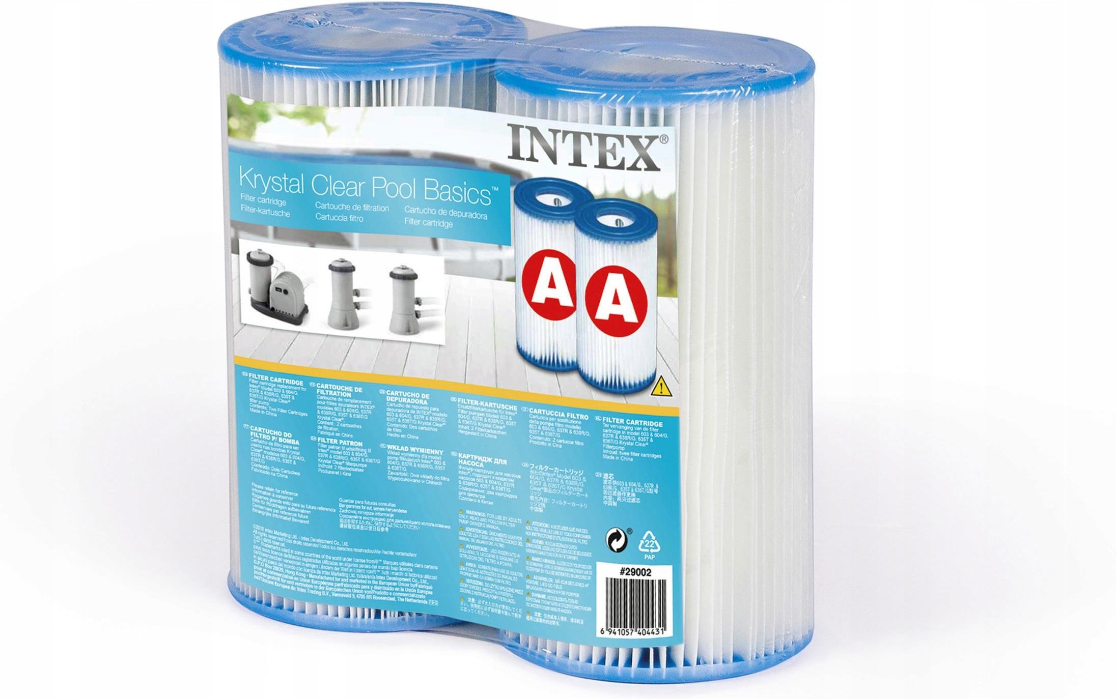 FILTR DO POMPY TYP A ZESTAW 2 SZT INTEX 29002 Wkład wymienny do pompy basenowej INTEX (filtr typu A), odpowiada za prawidłowe funkcjonowanie pompy i odpowiednią filtrację wody w basenie. Jego regularna wymiana gwarantuje brak zanieczyszczeń i zabezpiecza przed rozwojem drobnoustrojów w wodzie basenowej. Filtr typu A przeznaczony jest do pomp firmy Intex o numerach: 28603/28604/28637/28638/28635/28636/28673/28674. Wydajność pomp: 2006 l/h; 3785 l/h; 5678 l/h; 4542 l/h. Używane są one do basenów rozporowych oraz stelażowych o średnicach: 244/305/366/457/549 cm. Producent zaleca wymianę filtra co 2 tygodnie. Dane techniczne: filtr papierowy wysokość 20 cm średnica: +/- 11 cm waga zestawu: 0,43 kg