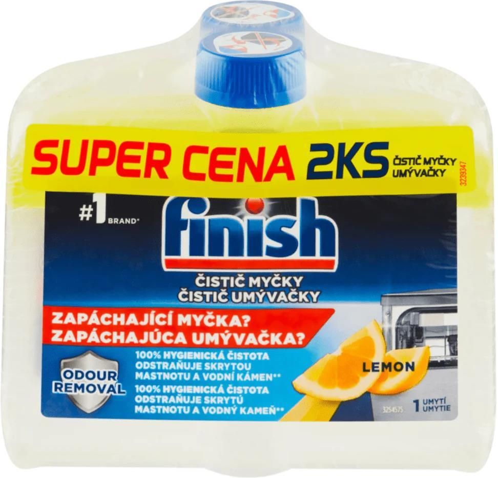 Płyn do czyszczenia zmywark FINISH Lemon DUO Dishwasher Cleaner 2x250ml 2x Płyn do czyszczenia zmywarki FINISH Lemon 250ml Zadbaj o swoją zmywarkę z płynem do jej czyszczenia Finish Lemon. Podczas zmywania brud i kamień zbierają się w najbardziej niedostępnych miejscach i wpływają na jakość mycia Twoich naczyń. Płyn do czyszczenia zmywarki Finish usuwa nawet najbardziej ukryty brud zapewniając 100% higienicznej czystości. Dzięki cytrynowemu zapachowi usunie wszelkie nieprzyjemne zapachy z wnętrza zmywarki. Zadbaj o higieniczną czystość Zalety produktu zapewnia 100% higienicznej czystości usuwa zalegający brud i kamień zapewnia świeży zapach zmywarki usuwa tłuszcz 2 opakowania o pojemności 250 ml do jednorazowego użycia Banalny w użyciu Włóż płyn do zmywarki i ustaw standardowy program mycia, aby wyczyścić zmywarkę. Żeby przedłużyć żywotność zmywarki przynajmniej raz w miesiącu zastosuj płyn do czyszczenia Finish. 2x Płyn do czyszczenia zmywarki FINISH Lemon 250ml Zadbaj o swoją zmywarkę z płynem do jej czyszczenia Finish Lemon. Podczas zmywania brud i kamień zbierają się w najbardziej niedostępnych miejscach i wpływają na jakość mycia Twoich naczyń. Płyn do czyszczenia zmywarki Finish usuwa nawet najbardziej ukryty brud zapewniając 100% higienicznej czystości. Dzięki cytrynowemu zapachowi usunie wszelkie nieprzyjemne zapachy z wnętrza zmywarki. Zadbaj o higieniczną czystość Zalety produktu zapewnia 100% higienicznej czystości usuwa zalegający brud i kamień zapewnia świeży zapach zmywarki usuwa tłuszcz 2 opakowania o pojemności 250 ml do jednorazowego użycia Banalny w użyciu Włóż płyn do zmywarki i ustaw standardowy program mycia, aby wyczyścić zmywarkę. Żeby przedłużyć żywotność zmywarki przynajmniej raz w miesiącu zastosuj płyn do czyszczenia Finish.