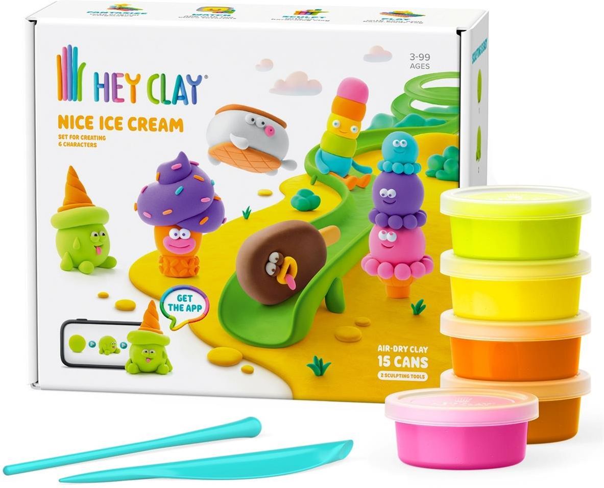 Zestaw ciastolina do robienia figurek masa plastyczna Hey Clay ICE CREAM Stwórz własną kolekcję uroczych lodowych bohaterów z zestawem HEY CLAY Nice Ice Cream! Ten kolorowy komplet zawiera aż 15 tubek masy plastycznej oraz narzędzia rzeźbiarskie W środku opakowania znajdziesz kod QR do aplikacji …