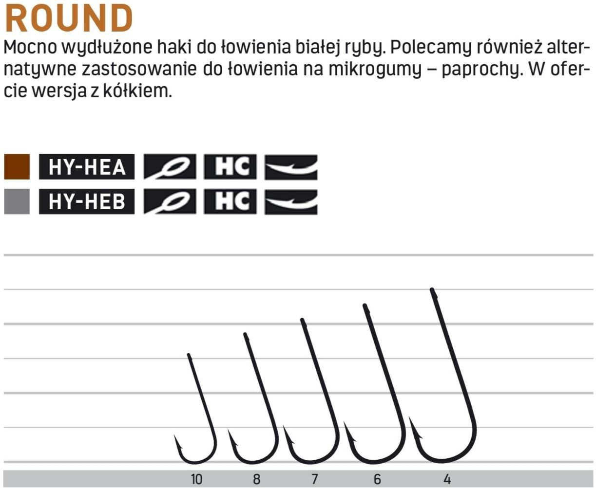 Jaxon haczyki Sumato Round HY-HEA r. 8 brązowe Mocno wydłużone haki do łowienia białej ryby. Polecamy również alternatywne zastosowanie do łowienia na mikrogumy „paprochy”. Rozmiar: 8 Ilość w opakowaniu: 10 sztuk HY-HEA - kolor: brązowy Profil: z zadziorem Materiał: stal węglowa - Hi-Carbon Wiązanie żyłki: z uszkiem
