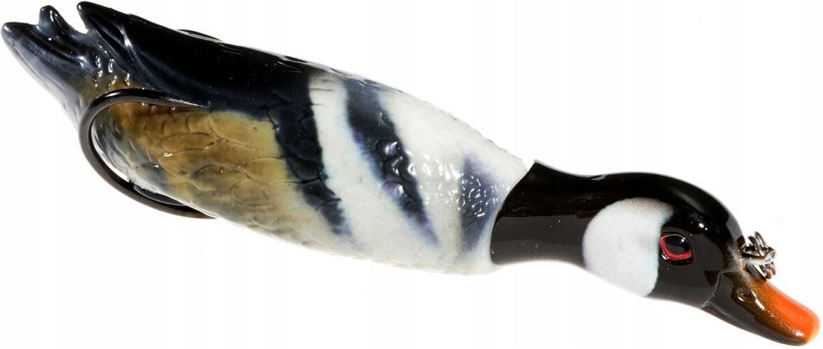 Jaxon Atract Happy Duck 13cm 25g VR-MSL01F Jaxon Atract Happy Duck 13cm/25g (VR-MSL01F) Długość: 13cm Waga: 25g Kolor: F Realistyczna przynęta powierzchniowa imitująca kaczątko. Umiejscowienie podwójnego haka ma działanie antyzaczepowe. Zastosowanie grzechotki oraz przegubowe połączenie głowy kaczki z korpusem powoduje osiągnięcie efektu naturalnego ruchu.