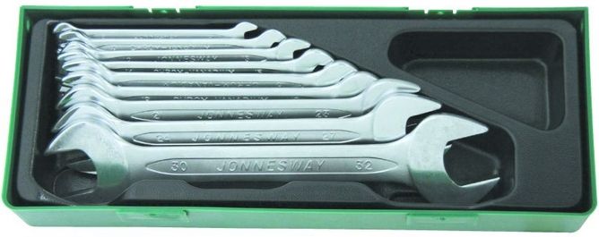 Zestaw kluczy płaskich 6-32 mm - Jonnesway Jonnesway W25110SP 10 szt. kluczy w rozmiarze: 6x7, 8x9, 10x11, 12x13, 14x15, 16x17, 18x19, 20x22, 24x27, 30x32 mm Warto wiedzieć zestaw kluczy płaskich Jonnesway z serii W25 - produkowane na Tajwanie mocne klucze kute matrycowo z wysokogatunkowej stali chromowo-wanadowej, chromowane w celu ochrony przed korozją klucze płaskie dwustronne - na każdym końcu inny rozmiar metryczny komplet kluczy dostarczany we wkładce narzędziowej, doskonale pasującej do szuflad skrzyń i wózków narzędziowych Jonnesway wymiary wkładki narzędziowej: 370 x 140 x 50 mm klucze przeznaczone do profesjonalnego zastosowania w warsztatach i serwisach motoryzacyjnych prezentowane zdjęcie pełni funkcję poglądową