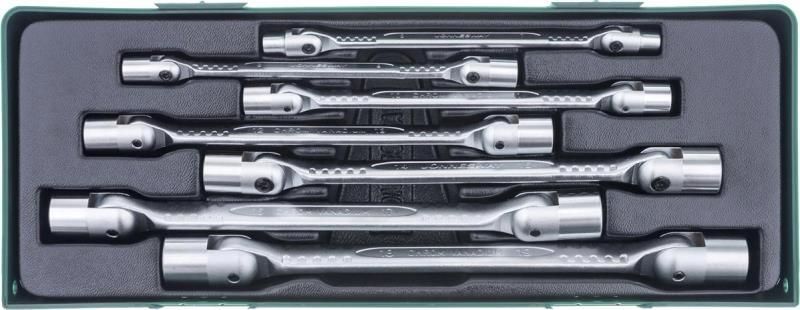 Charakterystyka produktu: Zestaw 7szt kluczy nasadowo-przegubowych z wkładką Wyposażenie standardowe: 7szt. kluczy serii W43A o rozmiarach: 6x7; 8x9; 10x11; 12x13; 14x15; 16x17; 18x19mm