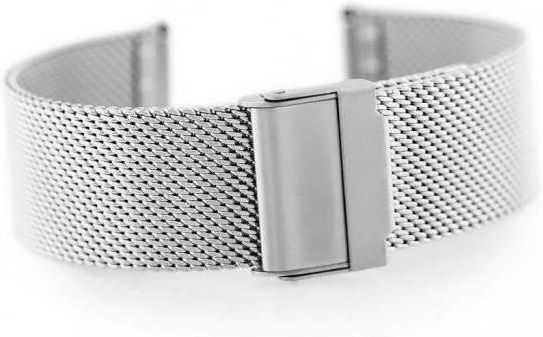 Stalowa srebrna błyszcząca prosta bransoleta siatkowa mesh do zegarka. Szerokość 22 mm. Zapięcie z dodatkowym zabezpieczeniem. Bransoleta pasuje do każdego zegarka ze standardowym mocowaniem o szerokości 22 mm. Komplet teleskopów gratis