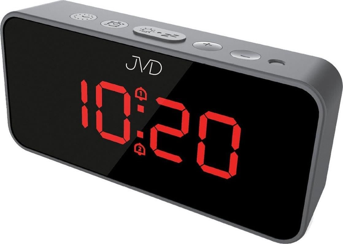 JVD Budzik Z Termometrem Sensor Light 2 Alarmy (SB32123) Budzik JVD SB32123 to nowoczesny model, który łączy w sobie funkcje budzenia z dodatkowymi opcjami, takimi jak termometr i czujnik światła. Dzięki tym unikalnym cechom, staje się on idealnym wyborem do sypialni, biura czy na stolik nocny, oferując nie tylko możliwość kontroli czasu, ale również istotne informacje o otoczeniu. Typ i materiał wykonania Budzik JVD SB32123 charakteryzuje się prostokątnym kształtem oraz elegancką czarną kolorystyką, co sprawia, że doskonale wpisuje się w różnorodne style wnętrz. Wyposażony jest w wyraźny wyświetlacz LED w kolorze czerwonym, co ułatwia odczyt godziny oraz wartości temperatury. Wykonany z wysokiej jakości tworzywa sztucznego, ten model budzika zapewnia trwałość i lekkość, co jest niezbędne w codziennym użytkowaniu. Wymiary Wymiary budzika JVD są kompaktowe i przemyślane. Szerokość wynosi 13 cm, wysokość to 6,1 cm, a głębokość 3,2 cm. Dzięki takiemu rozmiarowi, budzik zmieści się na każdym stoliku nocnym czy biurku, nie zajmując przy tym zbyt wiele miejsca, co czyni go praktycznym rozwiązaniem dla mniejszych przestrzeni. Rodzaj wyświetlacza Budzik JVD jest wyposażony w cyfrowy wyświetlacz LED, który podświetlany jest na czerwono. Użytkownicy mogą wybierać pomiędzy formatem 12 a 24-godzinnym, co daje możliwość dostosowania wyświetlanej godziny do indywidualnych preferencji. Dodatkowym atutem jest czujnik zmierzchu, który automatycznie dostosowuje jasność wyświetlacza do natężenia światła w pomieszczeniu, co zwiększa komfort i użyteczność budzika. Typ zasilania Zasilanie budzika JVD SB32123 jest bardzo wszechstronne. Może być zasilany zarówno bateryjnie, jak i sieciowo. W przypadku zasilania bateryjnego, wymagane są trzy baterie LR03 AAA, co czyni ten model idealnym rozwiązaniem do miejsc, gdzie dostęp do gniazdka jest ograniczony. Dodatkowo, budzik oferuje różne poziomy jasności podświetlenia, co również zwiększa jego funkcjonalność. Funkcje dodatkowe Budzik JVD SB32123 to nie tylko standardowe urządzenie do pomiaru czasu, ale także wielofunkcyjne narzędzie, które oferuje szereg dodatkowych funkcji, zwiększających jego użyteczność w codziennym życiu. Oto niektóre z nich: Wbudowany port USB do ładowania innych urządzeń elektronicznych, Dwa niezależne alarmy codzienne z funkcją drzemki (snooze), co pozwala na ustawienie różnych godzin budzenia, Termometr, który mierzy temperaturę wewnętrzną w zakresie od -9 do +39 stopni C, Czujnik zmierzchu, który automatycznie dostosowuje jasność wyświetlacza do warunków oświetleniowych. Dzięki tym funkcjom, budzik JVD staje się bardziej praktycznym rozwiązaniem, które nie tylko spełnia podstawowe wymagania związane z pomiarem czasu, ale także dostarcza dodatkowych informacji użytkownikowi.