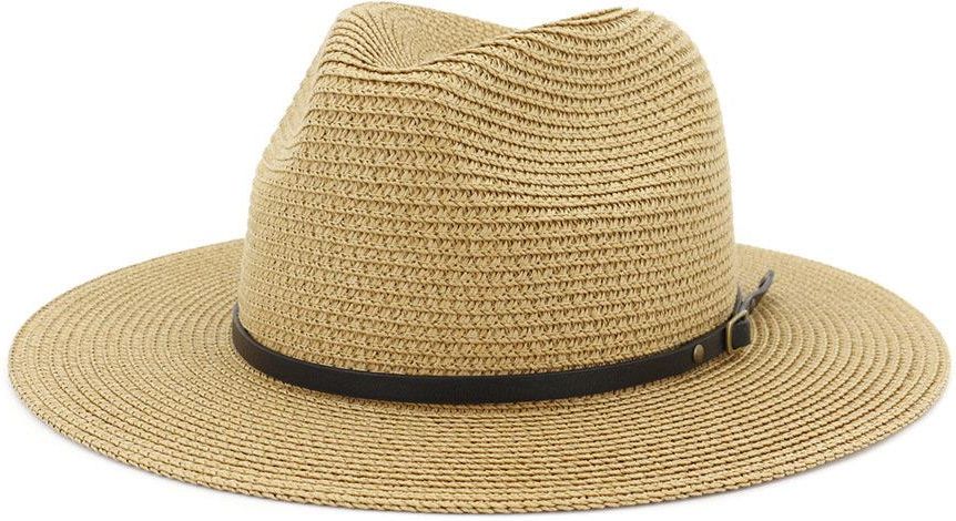 KAPELUSZ fedora letni DAMSKI MĘSKI panama SŁOMKOWY - 41899 Miss Glow . Szczegóły ID Produktu: 41899 Marka: Miss Glow Głębokość (cm): ok. 9 cm Obwód (cm): max. obw. ok. 55 cm Kolor przedmiotu: ciemny beż Materiał: 100% papier Inne szczegóły: kapelusz ozdobiony paskiem z klamerką, wewnątrz znajduje się tasiemka do regulacji obwodu, szerokość ronda: 8 cm, szerokość kapelusza: 32,5 cm KAPELUSZ fedora letni DAMSKI MĘSKI panama SŁOMKOWY