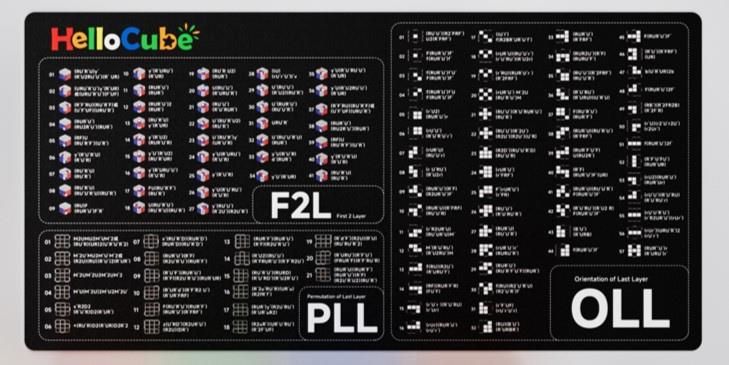 Mata HelloCube CFOP Duża mata speedcuberska o rozmiarze 35 cm x 70 cm od firmy HelloCube z algorytmami do najpopularniejszej metody na kostkę 3x3 - CFOP (Fridrich).