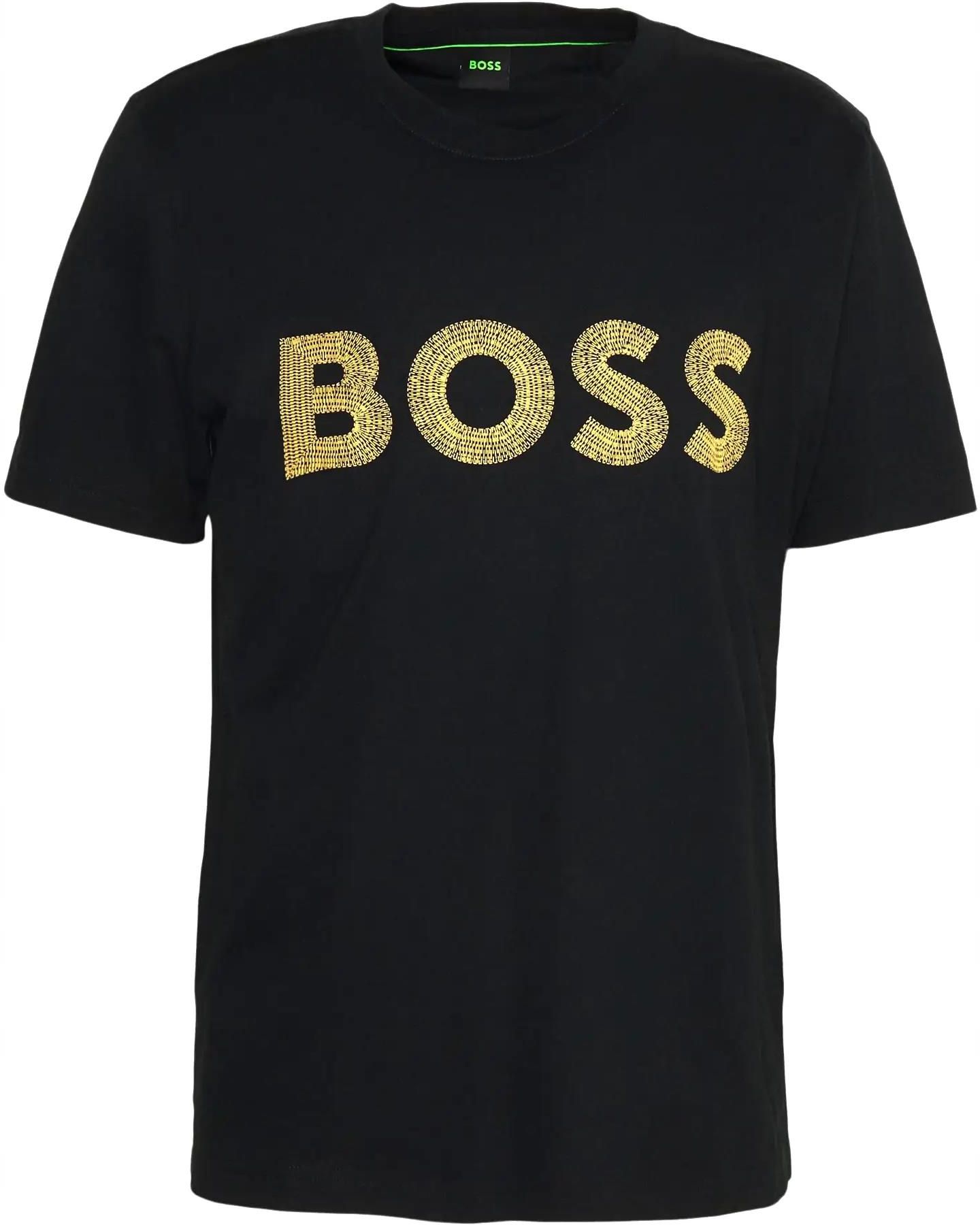 T-SHIRT HUGO BOSS r. S Podążasz za trendami i chcesz wyglądać efektownie? Koszulka z nowej kolekcji Hugo Boss to model dla Ciebie! Koszulka sportowa to idealna propozycja do dopełnienia każdej stylizacji. Ma prostokątny krój, okrągły dekold oraz złoty print z napisem BOSS w centralnej części. Jej …