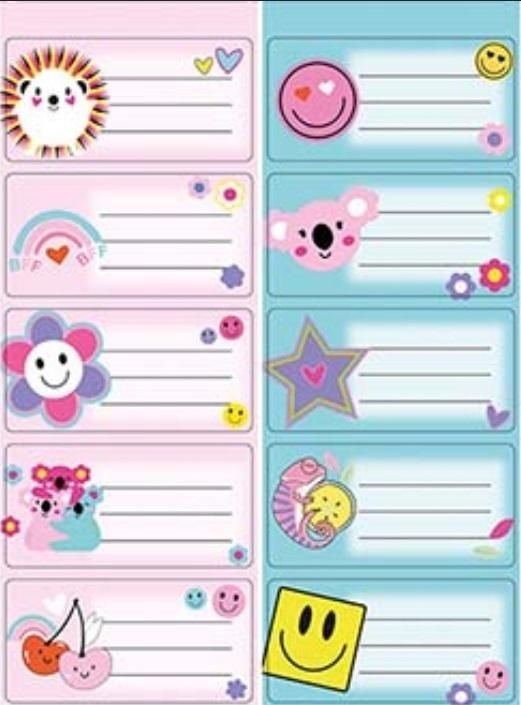 Mix wzorów, towar wysyłany losowo. Naklejki na zeszyty. Na arkuszu znajduje się 10 sztuk kolorowych etykiet z motywem dla dziewczynek. Gwarantują idealny sposób na oznaczenie zeszytów oraz podręczników dla dzieci i nastolatków. 2 wzory.