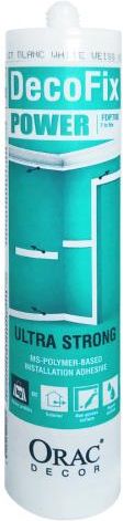 Klej Extra Strong 290ml. Klej polimerowy do montażu ciężkich profili lub do zastosowań zewnętrznych, nieporowatych (płytki, szkło) powierzchni lub do wilgotnego środowiska. Usuwalny roztworem mydła Możliwość malowania po utwardzeniu (min. 24 godziny) Wydajność 7-8 mb. Do połączeń używaj kleju FX200 DecoFix Extra