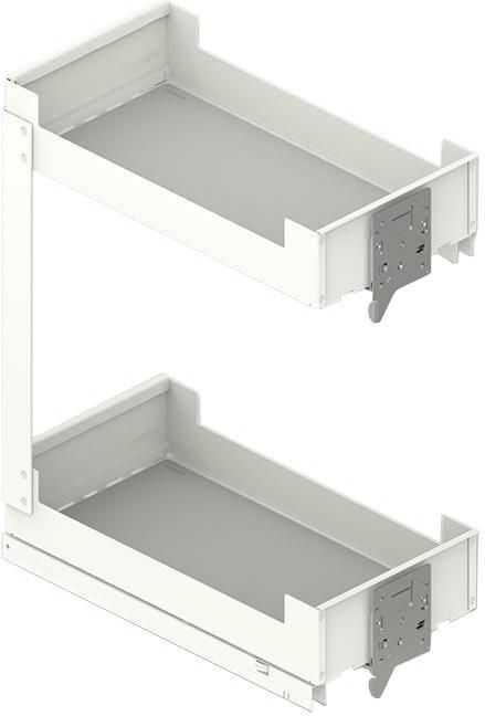 PEKA 04.8231.KPL/B PINELLO CARGO LIRO 300/ 2/ BIAŁE WYMIARY Wysokość światła szafki min. 525 mm Szerokość światła szafki min. 262-268 mm Głębokość światła szafki min. 506 mm OBCIĄŻENIE 40kg WYKOŃCZENIE Linia koszy Liro Kolor biały Pinello Liro Cargo 300 to podblatowe wysuwane cargo z dwoma półkami. Idealnie nadają się do montowania w meblach kuchennych pod blatem tuż przy piekarniku, zlewie lub kuchence. System opiera się na prowadnicy Grass o długości 500 mm z pełnym wysuwem, co zapewnia bardzo wygodne korzystane z niego na co dzień. Dzięki pełnym wysuwom, przechowywane produkty kuchenne są widoczne i łatwo dostępne od razu po wysunięciu z szafki. Natomiast wbudowany mechanizm Softclose zapewnia płynne i ciche zamykanie urządzenia. System może być obsługiwany prawo / lewo, ponieważ prowadnice są umieszczone pod półkami i są praktycznie nie widoczne. Półki Liro charakteryzuje się prostymi liniami i nieskomplikowanym kształtem. Półki są wykonane z najwyższej jakości powlekanej blachy stalowej, złożonej z milimetrową precyzją: każdy kąt jest dokładnie taki. System malowany jest proszkowo na kolor biały. Pomimo, że półki są na stałe zintegrowane ze stelażem to dzięki równej powierzchni są łatwe w czyszczeniu. Dodatkowo dno półek doposażone i chronione jest matami silikonowymi, które można bez problemowo wyjąć do wyczyszczenia. Specyfikacja techniczna: system przeznaczony jest do szafek o szerokość frontu 300 mm, wymiary mechanizmu: 248 mm x 495mm x 500 mm, minimalna wysokość światła szafki powinna wynosić: 525 mm, szerokość światła szafki: 262-268 mm, minimalna głębokość światła szafki: 520 mm, bciążenie mechanizmu to aż 40 kg (wraz z wagą frontu), jedna półka wytrzymuje obciążenie aż 30 kg (przy równym rozłożeniu produktów), nadaje się do montażu do frontów z uchwytem meblowym, dla szafek bezuchwytowych należy dodatkowo zamontować push to open (to urządzenie należy dodatkowo dokupić). Zestaw zawiera: 1 ramę z dwoma zintegrowanymi półkami, 2 mocowania frontu, 3 pary podkładek (nr 1 do płyty 16 mm, nr 2 - 18 mm lub nr - 19 mm), 2 maty silikonowe, komplet prowadnic Nova Pro długość 500 mm, zestaw nie zawiera śrub mocujących (proponujemy montaż na euro lub zwykłe śrubki 4x16 mm). Aby zapewnić stabilizację mechanizmu dolną prowadnicę montuje się do lewej strony korpusu natomiast górna prowadnicę do prawej strony korpusu szafki. Taki sposób mocowania gwarantuje sztywność ramy i bardzo dobre wysuwanie mechanizmu. Prowadnice Grass Nova Pro posiadają pełen wysuw i cichy domyk. Dodatkowo system posiada regulację 3D. Szczegółowa instrukcja montażu i regulacji zawarta jest w zestawie. UWAGA! Zdjęcia są poglądowe czasami towar może minimalnie odbiegać wyglądem od sprzedawanego ale nadal spełnia te same funkcje co w opisie