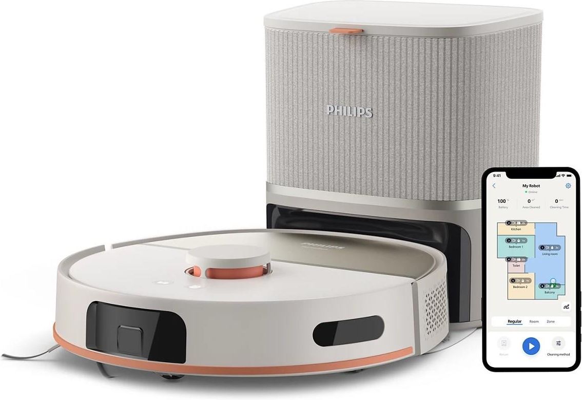 Philips Aqua 5000 Robot sprzątający i mopujący XU5100/20 Zalety chodzą parami. Zadbaj o nieskazitelne podłogi dzięki serii Philips Aqua 5000. Dzięki wydajnemu mopowaniu i dużej mocy ssania możesz usunąć więcej kurzu niż przy odkurzaniu, a Twój dom będzie błyszczał bez żadnego wysiłku. Żyj więcej, sprzątaj mniej. Podwójny mop zapewnia nieskazitelny połysk Urządzenie odkurza i mopuje twarde podłogi za jednym razem, skutecznie usuwając drobną warstwę codziennego kurzu, a także trudniejsze zabrudzenia, takie jak błotniste odciski łap i plamy. Podwójny mop odkurzacza jest delikatny dla powierzchni i bezwzględny dla zabrudzeń. Dzięki pojemnikowi na wodę, który umożliwia mopowanie za jednym razem, oszczędzasz czas i wysiłek. Zapewnij nieskazitelne podłogi i bez obaw chodź po nich na boso. Duża moc ssania pozwala wciągnąć kurz i brud, taki jak sierść zwierzęcia Ciesz się dwukrotnie większą mocą dzięki niezrównanej mocy ssania odkurzacza wynoszącą 10 000 Pa². Nie chodzi tylko o walkę z widocznymi okruchami i sierścią zwierzęcą, ale o głębsze działanie. Poznaj nowy poziom czystości, który zapewnia wychwytywanie nawet najbardziej ukrytych zabrudzeń, dzięki czemu podłogi są nieskazitelne i odświeżone. Wygoda i spokojna głowa przez 70 dni, dzięki stacji automatycznego opróżniania Wygoda i spokój ducha nawet przez 70 dni* dzięki stylowej stacji automatycznego opróżniania. Odkurzacz automatycznie opróżnia zbiornik na kurz w stacji dokującej. Stacja wyposażona jest w 3-litrowy worek s-bag, który może gromadzić kurz i inne rodzaje brudu nawet przez 70 dni, a Ty w tym czasie nie musisz się martwić jego wymianą. Utylizacja uniwersalnych worków s-bag przebiega higienicznie i bez tumanów kurzu, jest to więc rozwiązanie idealne dla osób z astmą lub alergią. Precyzja sprzątania i nieskazitelna czystość podłóg Ten odkurzacz, zaprojektowany z myślą o chaosie codziennego życia, nie wymaga wstępnego sprzątania domu. Dzięki zaawansowanej technologii laserowej odkurzacz bez trudu wykrywa i omija małe przeszkody, od obuwia po zabawki dla dzieci, zapewniając dokładne i bezkolizyjne sprzątanie wokół nich. Urządzenie zapewnia skuteczne wykrywanie, dbając o czystość domu nawet w warunkach słabego oświetlenia. Żyj pełnią życia, a nasz odkurzacz zajmie się bałaganem, zapewniając Ci spokój ducha i nieskazitelny dom każdego dnia. Koniec ze splątanymi szczotkami⁴ Bez trudu zapewnij czystość dzięki urządzeniom z serii Aqua 5000 wyposażonym w nowoczesne szczotki zapobiegające nawijaniu się włosów. Zapomnij o szczotkach ze splątanymi włosami –nasz mechanizm skutecznie je odkurza, zapewniając maksymalną wydajność odkurzacza przy minimalnej konserwacji. Philips Aqua 5000 to więcej wolnego czasu, mniejszy bałagan, nieskazitelne podłogi i mniej ręcznego sprzątania. Nie przegapi żadnego miejsca, do którego może dotrzeć Dzięki najnowocześniejszej technologii lasera liniowego nasz odkurzacz precyzyjnie mapuje dom, wyznaczając skuteczną ścieżkę czyszczenia od pokoju do pokoju. Odkurzacz dociera głęboko do narożników i zamiata wzdłuż ścian, nie omijając żadnego miejsca. Jego smukła konstrukcja pozwala usuwać brud spod mebli, a dzięki zdolności pokonywania przeszkód do 20 mm, przekracza progi i wjeżdża na dywany. Nasz odkurzacz sprawi, że Twoja przestrzeń będzie nieskazitelnie czysta. Spersonalizuj sprzątanie i dostosuj je do potrzeb swojego domu Aplikację robota Philips Aqua opracowano tak, aby była intuicyjna i łatwa w użyciu. Zawiera instrukcje krok po kroku i pomocne filmy, które pozwalają w pełni wykorzystać możliwości urządzenia. Aplikacja komunikuje się z robotem, kontrolując i monitorując jego pracę oraz przesyłając powiadomienia dotyczące sprzątania, gdziekolwiek jesteś, a także na bieżąco pokazując, gdzie jest już posprzątane. Zdecyduj, w jaki sposób chcesz posprzątać każde pomieszczenie, wskaż robotowi, gdzie nie może jechać, lub zaplanuj sesję sprzątania, aby po powrocie do domu zastać nieskazitelnie czystą podłogę. *W porównaniu z serią Aqua 7000 *Testowano na twardej podłodze przy najwyższym poziomie mocy ssania *W zależności od intensywności i sposobu użycia *Wyniki różnią się w zależności od sposobu użycia *W zależności od intensywności i sposobu użycia
