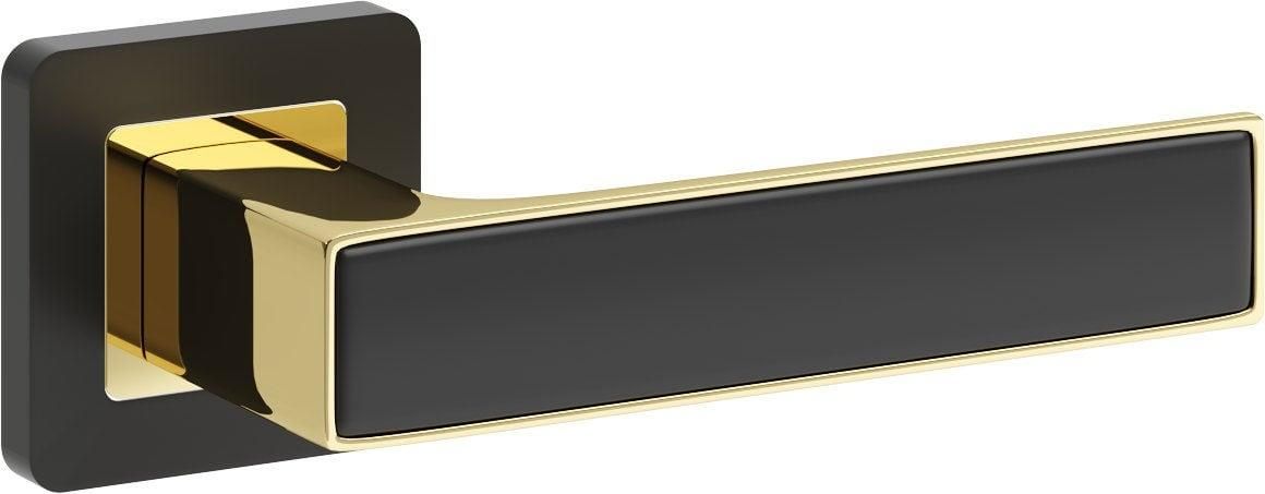 Klamka do drzwi wewnętrznych PLATO czarno-złota marki PORTA wyróżnia się eleganckim połączeniem kolorów i nowoczesnym designem. Wykonana z wytrzymałego stopu cynku i aluminium gwarantuje trwałość oraz niezawodność przez długie lata użytkowania. Czarna powierzchnia z złotymi akcentami tworzy ekskluzywne wykończenie, które dodaje wnętrzu charakteru i wyjątkowego stylu. Kwadratowa rozeta idealnie komponuje się z nowoczesnymi aranżacjami, podkreślając geometryczny charakter kolekcji PRESTIGE. Ergonomiczny kształt rękojeści zapewnia wygodny i pewny chwyt dla każdego użytkownika. Kontrastowe zestawienie czerni ze złotem pasuje zarówno do jasnych, jak i ciemnych drzwi. Precyzyjne wykonanie gwarantuje płynną pracę mechanizmu. Idealne rozwiązanie dla osób poszukujących wyrafinowanego akcentu w wystroju wnętrz.