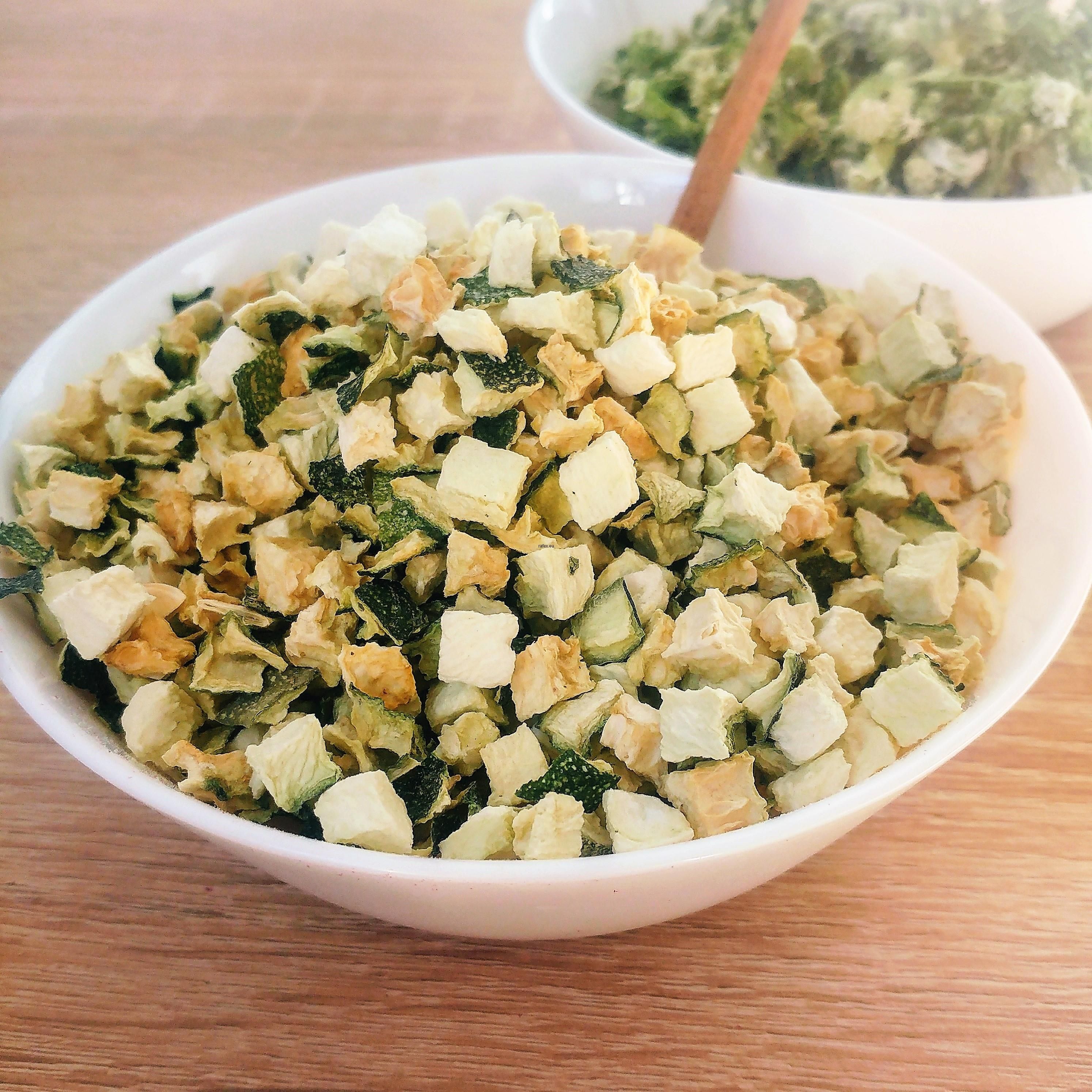 Wyjątkowo smaczna i popularna, zdrowa, bogata w mikro- i makroelementy. Cukinia jest chętnie używanym warzywem. Teraz dostępna przez cały rok, świeża i gotowa do wykorzystania jako dodatek do sałatek czy w asyście dań mięsnych. Proces liofilizacji zachowuje jej właściwości i sprawia, że jest naturalna i świeża nawet po dłuższym czasie. Pojemność opakowania: 50 g.