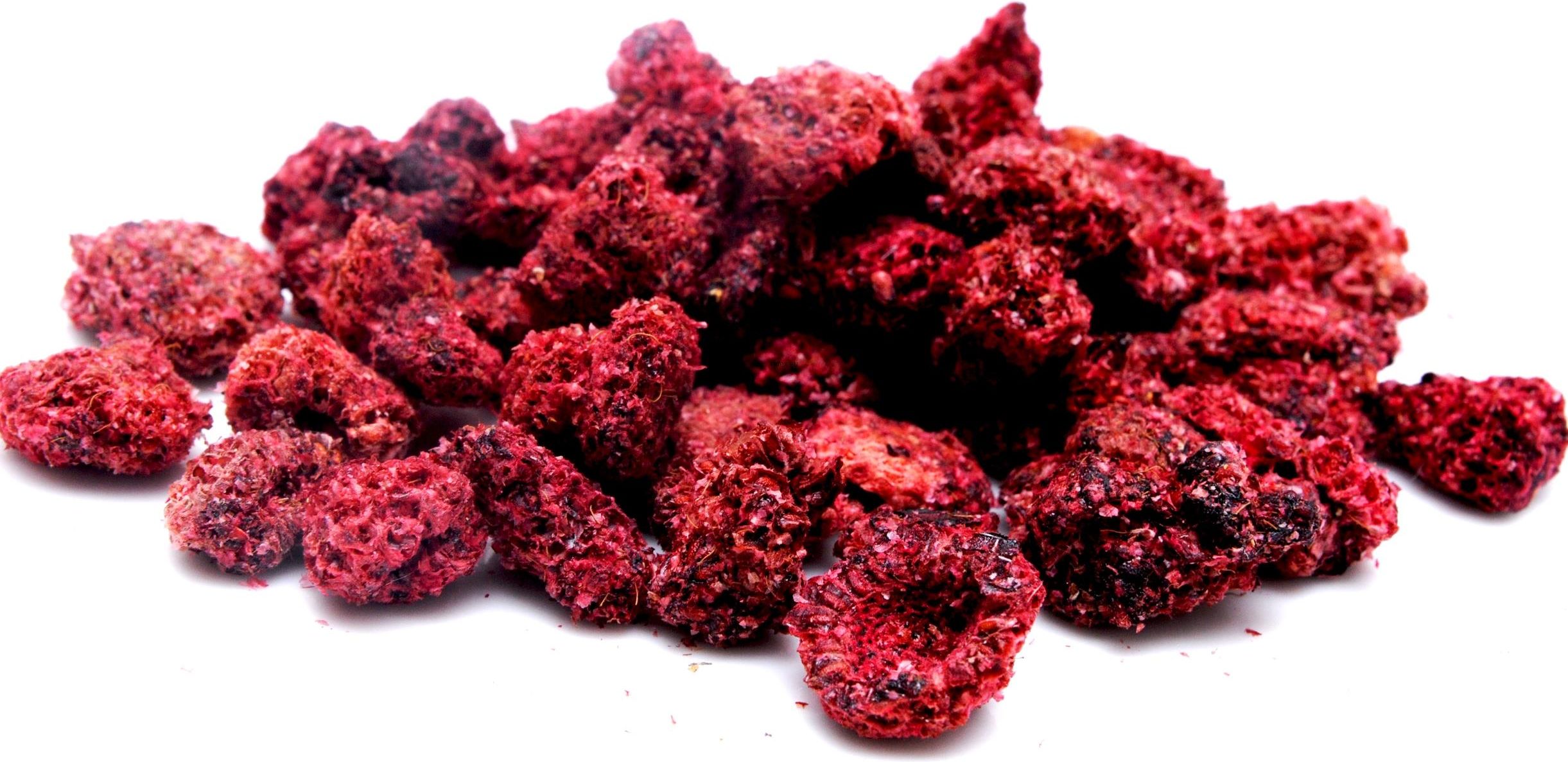 Owoc maliny Fructus Rubi idaei (Bacca Rubi idaei) bogaty w cukry (sacharoza, fruktoza, glukoza), olejek eteryczny, pektyny, pochodne cyjanidyny, szereg witamin (E,B1,B2,B6) a także kwasy organiczne jak choćby: cytrynowy, jabłkowy i salicylowy. Odmiana słodka. Owoc liofilizowany, pojemność: 1 kg. …