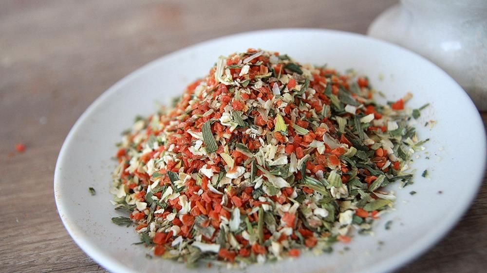 Skład: Por, marchew, pasternak, cebula Charakterystyka: Suszone warzywa to jedna z podstawowych przypraw w każdej polskiej kuchni. Do najważniejszych walorów mieszanki należą kombinacje suszonych warzyw jakie w niej występują – to one są gwarantem unikalnego smaku i jedynego w swoim rodzaju aromatu. Jednym z ciekawych połączeń jest obecność cebuli, pasternaku, marchwi oraz pora. Właśnie to połączenie stanowi fantastyczne uzupełnienie tradycyjnych polskich zup oraz innych dań. Zastosowanie: Wspomniane zasuszone warzywa będą doskonałym dodatkiem do zup znanych nam jeszcze z okresu kuchni staropolskiej. Do takich zup zaliczyć możemy m.in. Żur tudzież barszcz czerwony. Nuta wyrazistych warzyw z pewnością wpłynie pozytywnie zarówno na smak, jak i na aromat dania. Z mieszanki przypraw można również korzystać w przypadku innych potraw takich jak mięsa czy sałatki. Ciekawostki: Cebula to główny składnik tytułowego produktu. Ciekawostkę stanowi fakt, iż podczas krojenia wydziela ona tzw. Sulfin etylu, który podrażnia spojówki oczu powodując łzy.