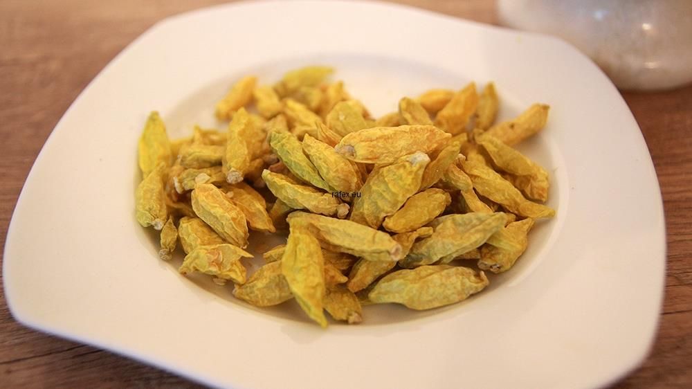 Charakterystyka: Nieco mniej ostra odmiana tabasco. Jest to wyjątkowa przyprawa o niezwykłym smaku i aromacie. Żółta papryka tabasco powstała z niedojrzałego do końca kultywaru. Ma delikatniejszy smak. Konserwowana metodą tradycyjną, nie traci wartości odżywczych ani smakowych. Jest świeża na dłużej. Zawiera szereg mikro- i makroelementów, dzięki czemu doskonale wpasuje się w naszą dietę. Do nabycia w opakowaniach o pojemności 20 g. Zastosowanie: Do dań mięsnych jako sos na pizzę, do kanapek. Wyjątkowa porcja kurczaka z krewetkami i tabasco. Do woka dodaj oliwę z oliwek w asyście czosnku oraz soli. Dodaj papryczki tabasco (niewiele) żółte, poczekaj aż się podsmażą. Włóż krewetki a następnie kurczaka. Całość smaż kilka minut, a następnie posyp kolendrą. Ciekawostki: Tradycyjny sos Tabasco powstaje ze sfermentowanych papryczek leżakujących w dębowych beczkach. Po kilku miesiącach dodaje się ocet, a następnie sól. Całość jest gotowa po około 3,5 roku.