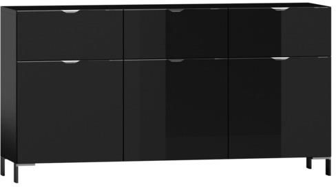 W komodzie BRODWAY możesz przechowywać stylowe dekoracje stołowe, ulubione pamiątki rodzinne, dokumenty lub tekstylia.Przechowywane przedmioty możesz rozdzielić w szufladach i wnękach. Dzięki takiemu układowi wnętrza, zachowasz porządek na dłużej.Zarówno prowadnice, jak i zawiasy wyposażono w system „cichego domyku”, dzięki czemu szuflady i drzwi nie trzaskają.3 szuflady, 6 wnęk●W 6 wnękach możesz przechowywać książki, tekstylia lub elementy zastawy stołowej.●3 szuflady to idealne miejsce na sztućce lub dokumenty.Wysoki połyskFronty komody wykończono połyskującym lakierem, który tworzy gładką taflę i powiększa optycznie przestrzeń.Szkło lacobel na blacie prezentuje się bardzo elegancko.Chromowane uchwyty podkreślają nowoczesny charakter mebla.Kwintesencja nowoczesnej elegancji●Kolekcja mebli BRODWAY wprowadza do wnętrza odrobinę szyku.●Pozwala stworzyć aranżację łączącą zamiłowanie do połysku z symetrią, charakterystyczną dla geometrycznych brył nowoczesnych mebli.●Meble BRODWAY możesz wkomponować zarówno w industrialną przestrzeń, wypełnioną szkłem i połyskującym metalem, jak i wytworne wnętrze w stylu "glamour".