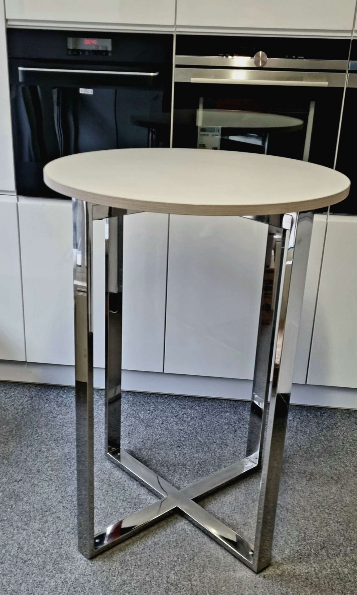 Stół koktajlowy / barowy okrągły. Dzięki swojej wyjątkowej formie doskonale będzie pasować zarówno do nowoczesnych jak i klasycznych wnętrz. Solidny stolik bankietowy o wysokiej funkcjonalności i niebanalnym stylu, a także wysokiej jakości wykonania. Świetnie zgraja się z pozostałymi meblami znajdującymi się w pomieszczeniu utrzymanym w stylu loftowym, nowoczesnym, minimalistycznym, industrialnym oraz wszędzie tam, gdzie ceniona jest wysoka funkcjonalność i solidne materiały. Specyfikacja szczegółowa stołu: Wysokość 110 cm Średnica blatu 80 cm Grubość blatu: 2,5 cm Nogi: metalowe, chromowane, płaskie 6x2 cm Funkcjonalność, WYGODA, wytrzymałość – to cechy charakterystyczne tego wysokiego stołu bankietowego. Zdjęcia prezentują realny produkt. Stolik bankietowy jest dostępny od ręki, możliwość obejrzenia w Lublinie.